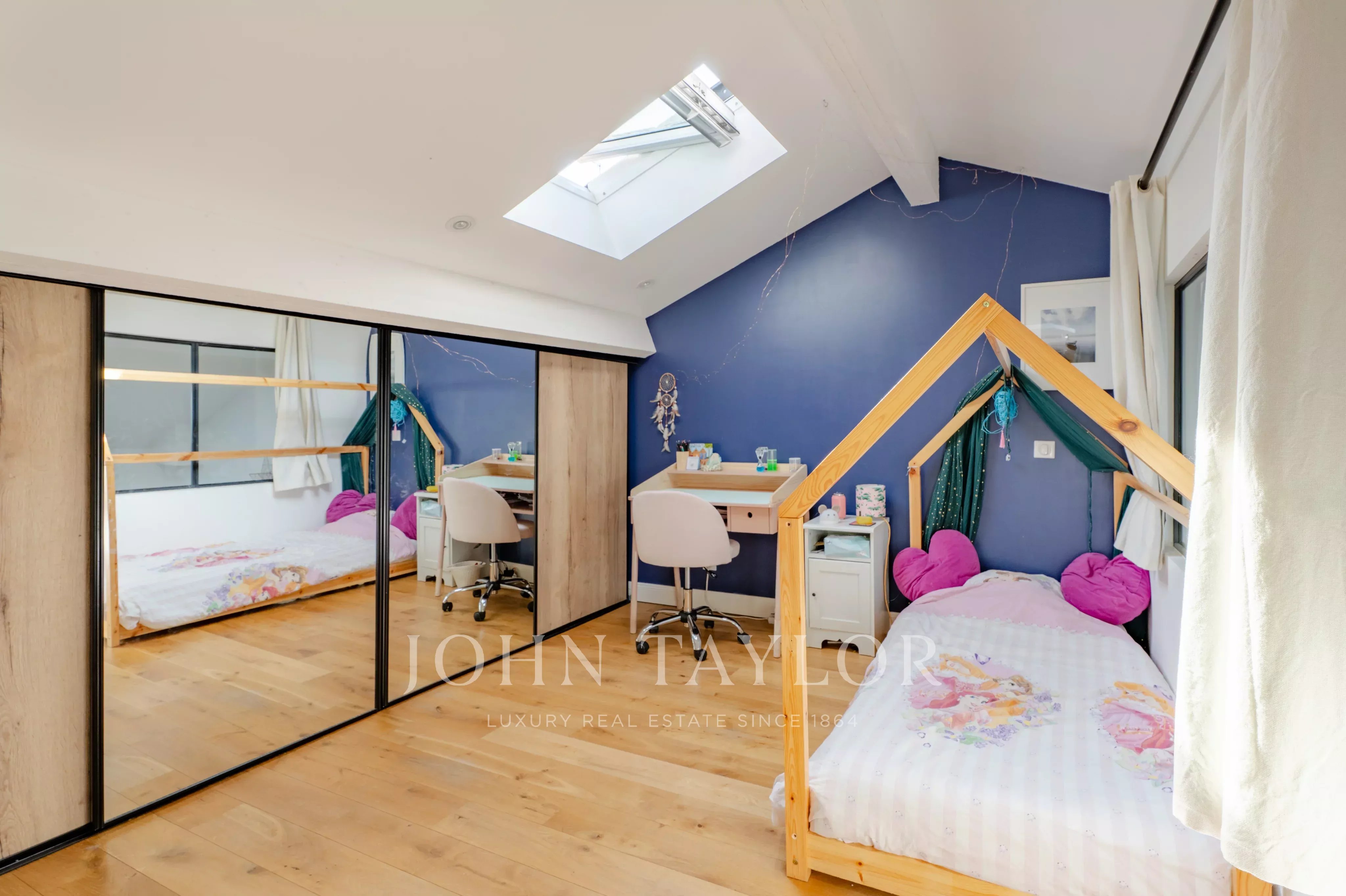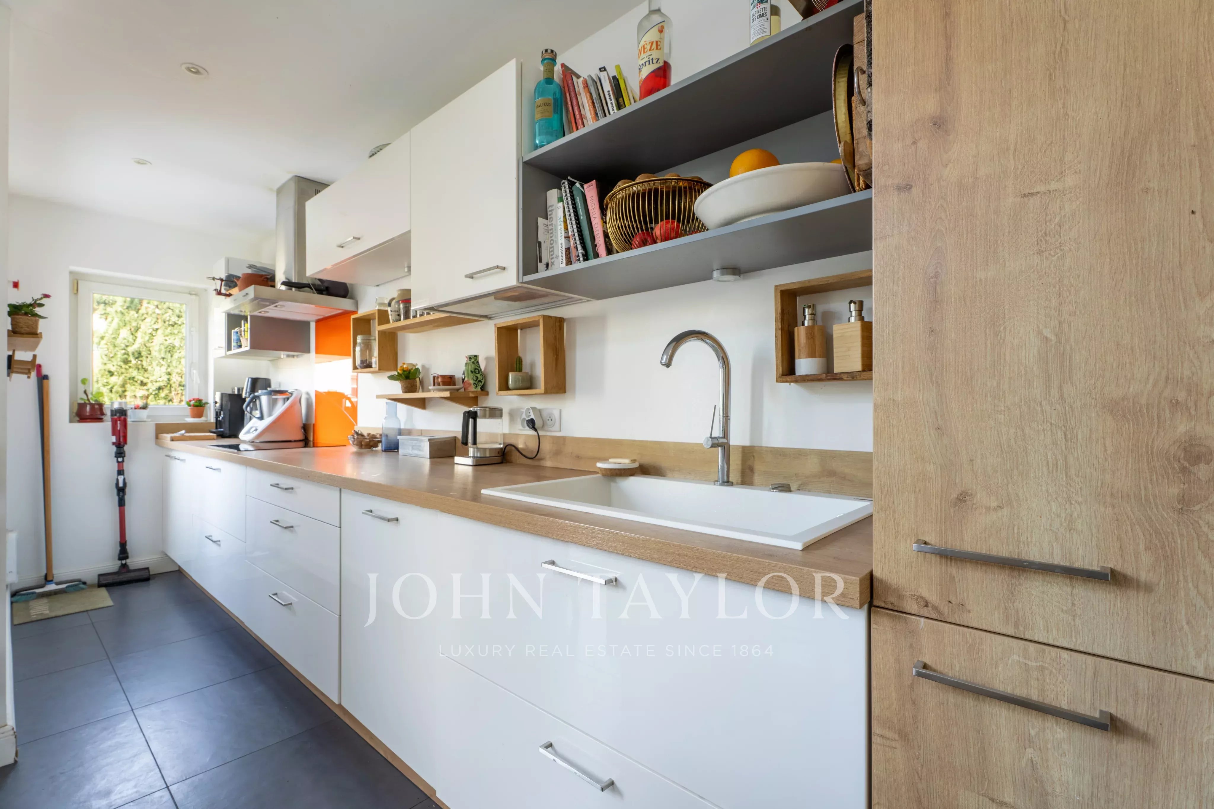 Le premier niveau accueille une superbe pièce de vie d’environ 55 m², baignée de lumière, avec salon, salle à manger et une cuisine ouverte, entièrement aménagée et équipée, agrémentée d’un îlot central.