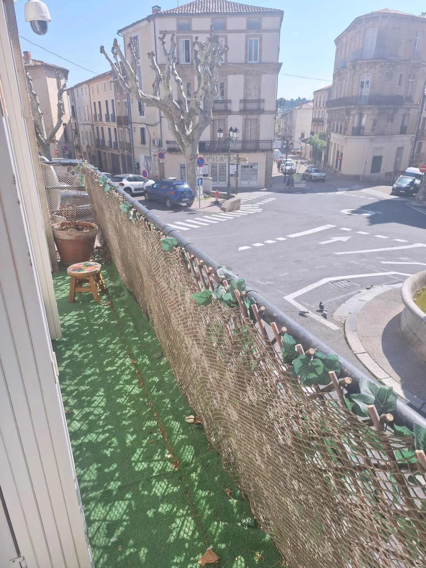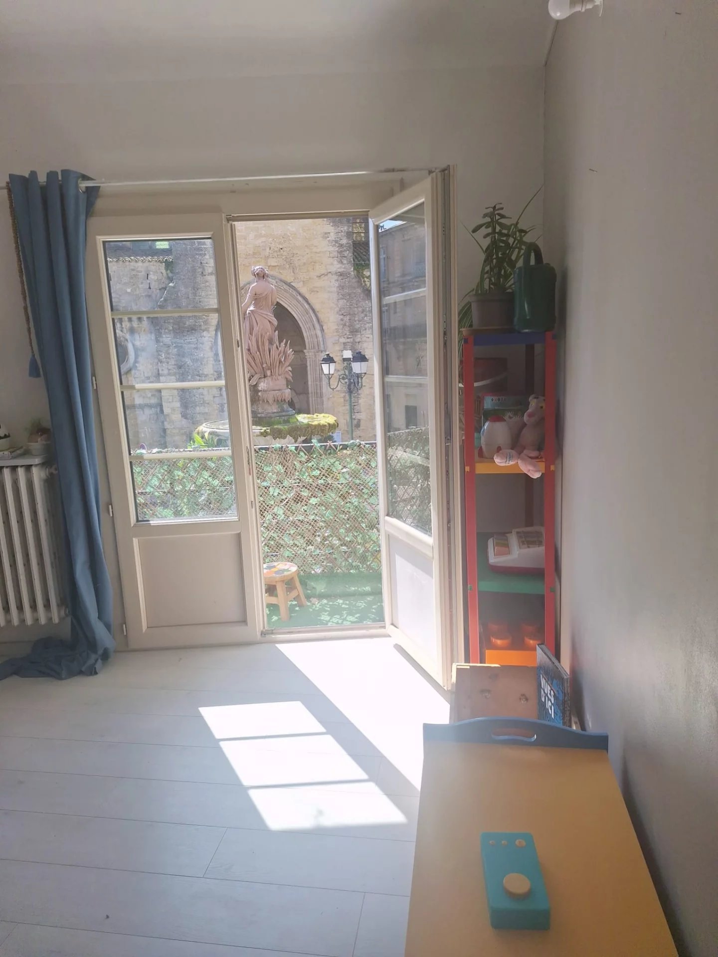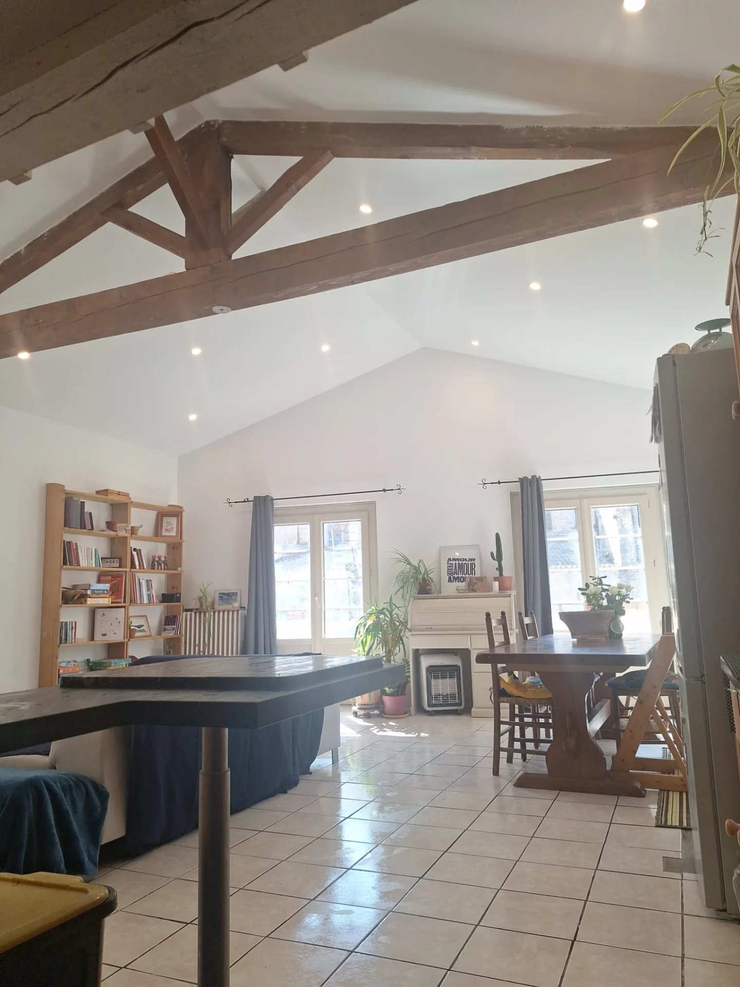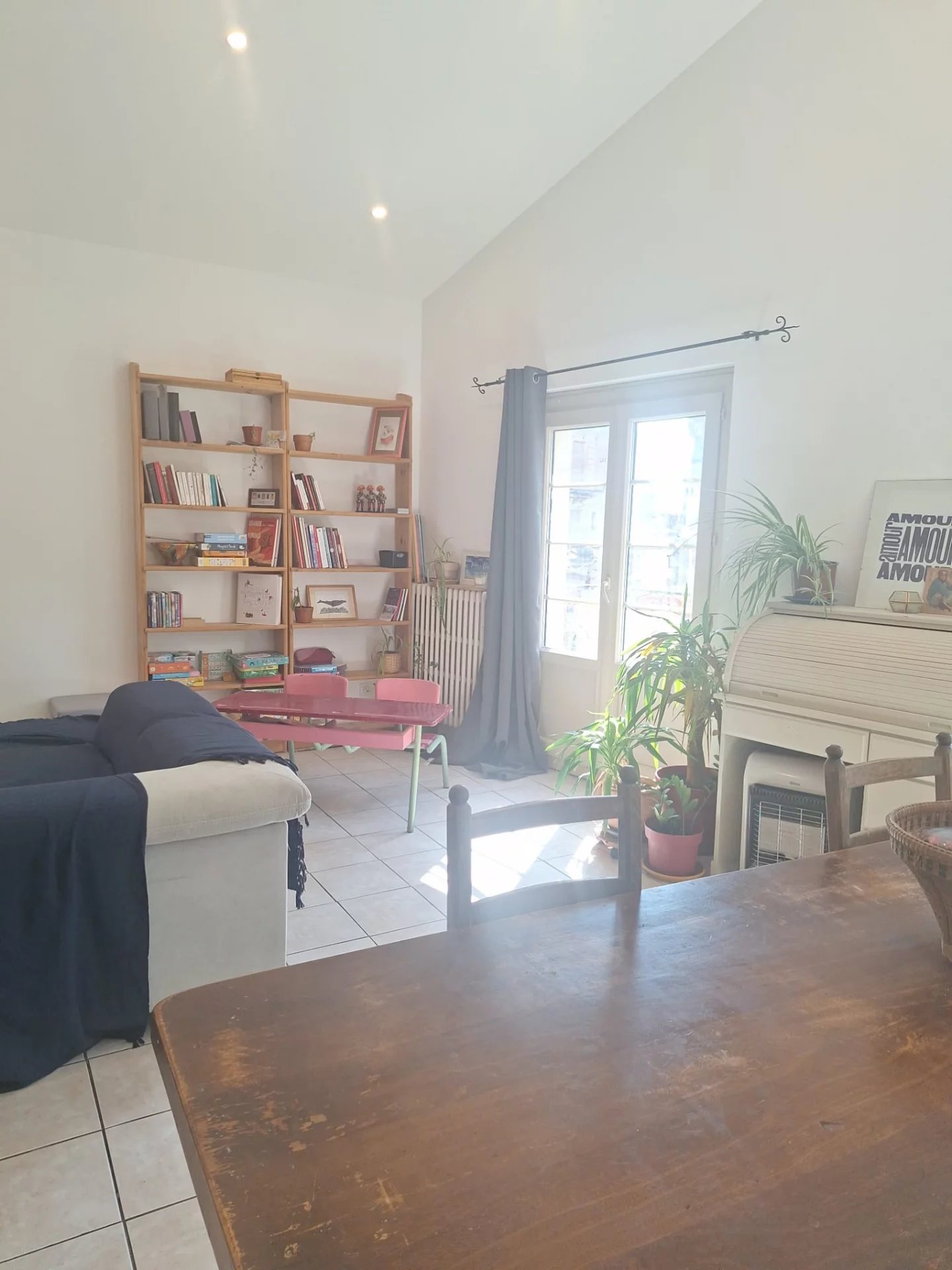 pièce à vivre lumineuse de 45m2 avec cuisine américaine et petit balcon