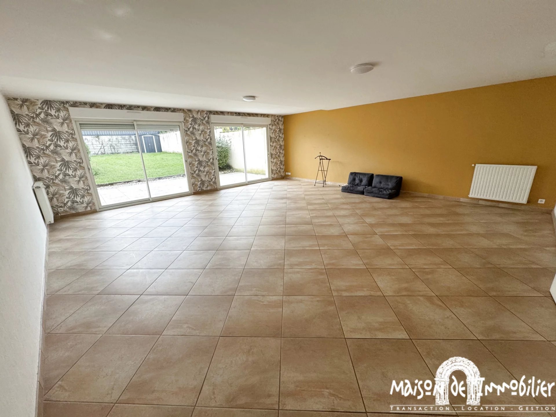 A proximité immédiate du centre-ville et des animations de COGNAC (Charente), découvrez à la location cette maison rénovée d'environ 161m2 offrant une entrée, une cuisine aménagée et équipée (plaque gaz et hotte), un vaste séjour donnant sur la terrasse et le jardin, toilettes avec lave-mains.