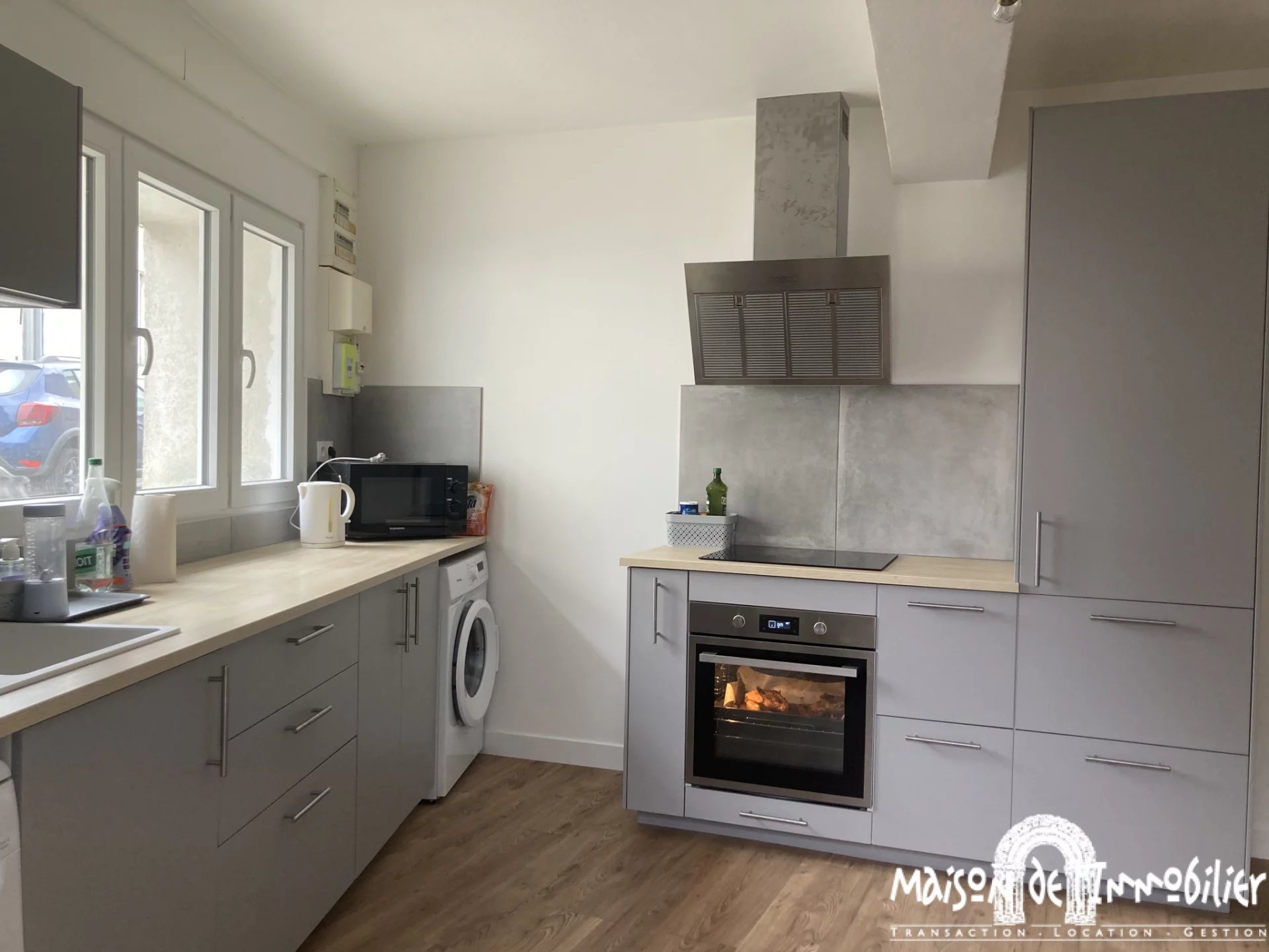 A Cognac (Charente), proche du centre-ville, découvrez à la location cette maison meublée d'environ 79m2 entièrement rénovée, avec jardin et terrasse couverte, comprenant une cuisine aménagée et équipée, un séjour et toilettes avec lave-mains.