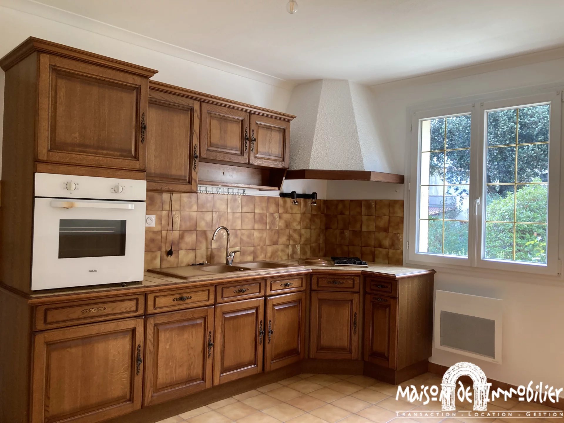 Situé dans un quartier résidentiel de COGNAC, découvrez à la location ce pavillon de plain-pied d'environ 88m2, comprenant une entrée, un séjour, une cuisine aménagée et équipée (plaque de cuisson gaz et électrique, four et hotte), trois chambres dont deux avec placard, une salle de bains et toilettes.