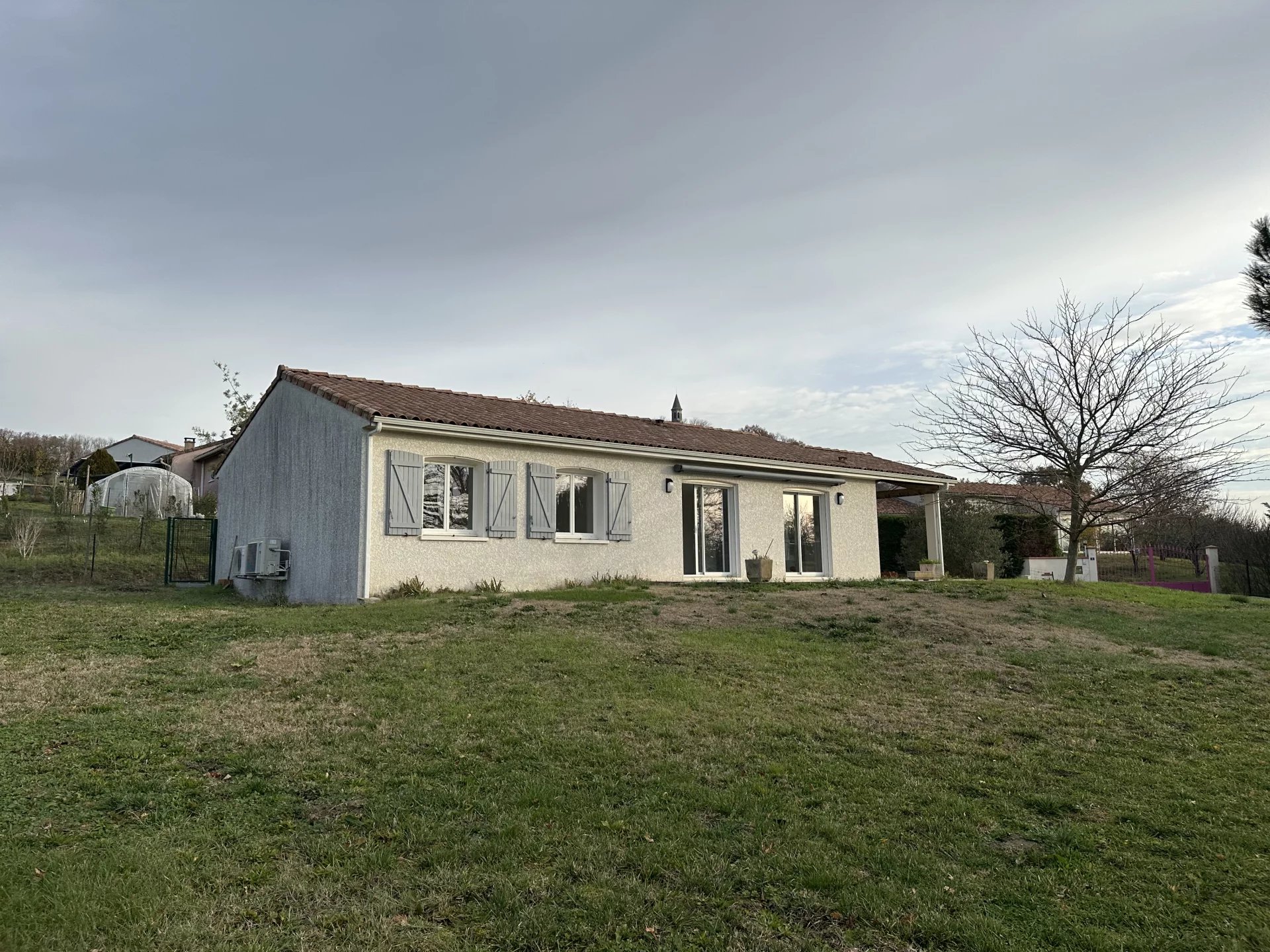 CUQ LES VIELMUR BELLE VILLA T4 - ENTREE - GRAND SEJOUR AVEC CUISINE EQUIPEE- 3 CHAMBRES - SALLE D'EAU - WC - GARAGE - JARDIN ARBORE - CHAUFFAGE AU SOL PAR POMPE A CHALEUR - CLIM REVERSIBLE - DEUX TERRASSES - HCL 820 € (562 € + 258 € EDLE)