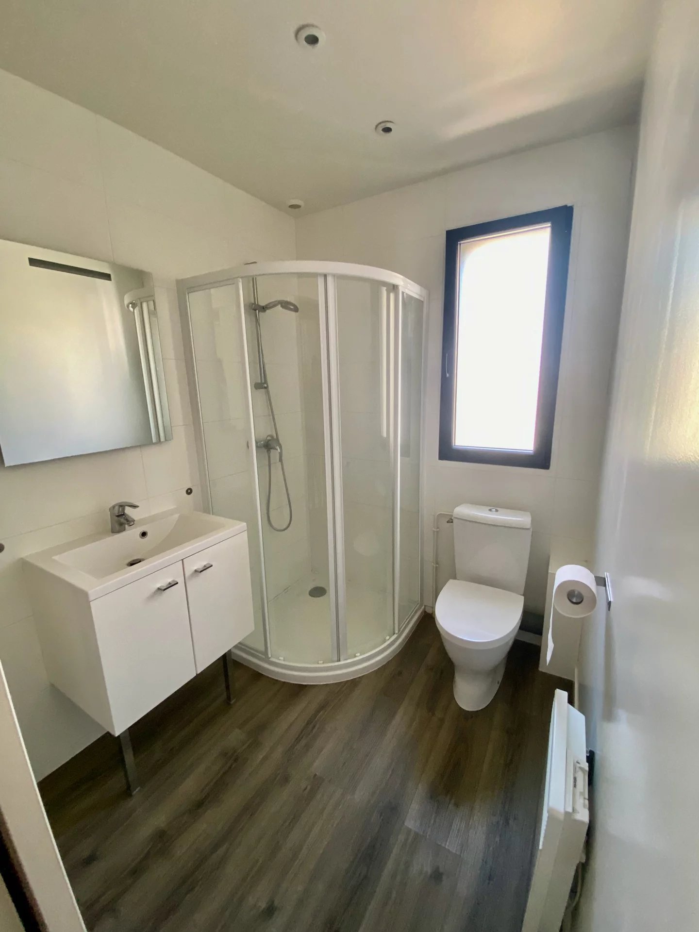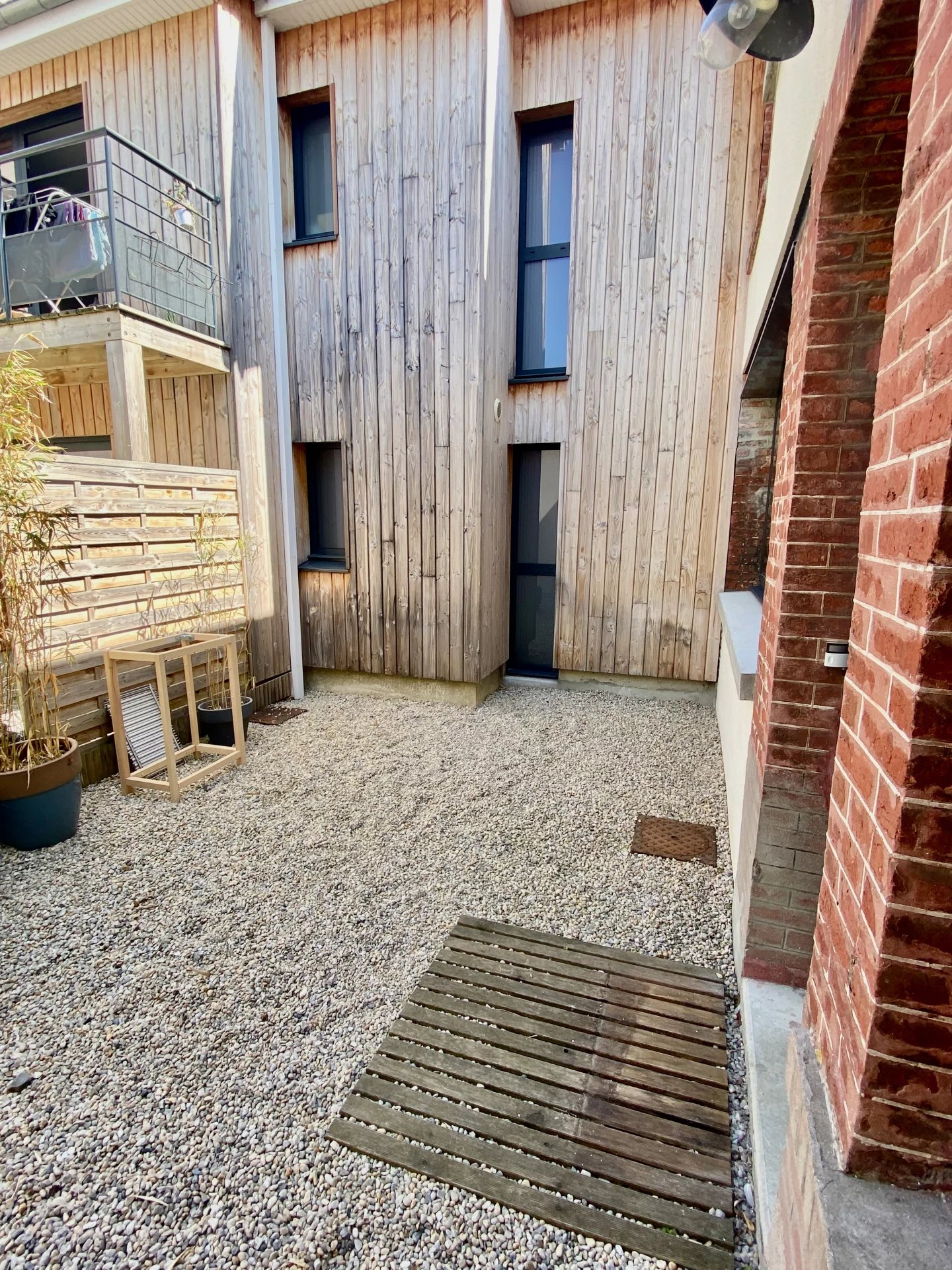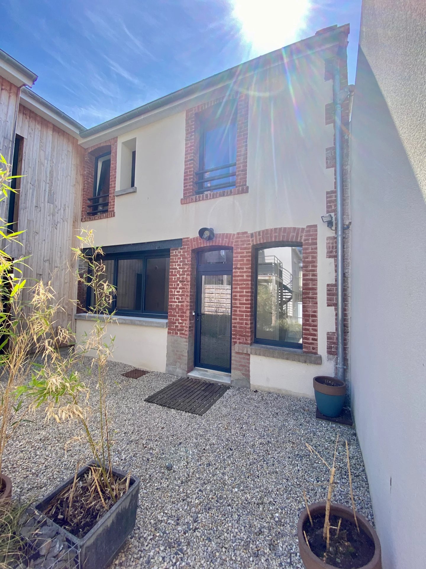 Petite maison de ville en plein centre de Houlgate avec une cour, comprenant au rez de chaussée une pièce à vivre avec baie coulissante donnant sur la cour, une cuisine américaine aménagée et équipée, wc, à l'étage 2 chambres dont une avec dressing, une salle de douche et wc. Très bon état général.