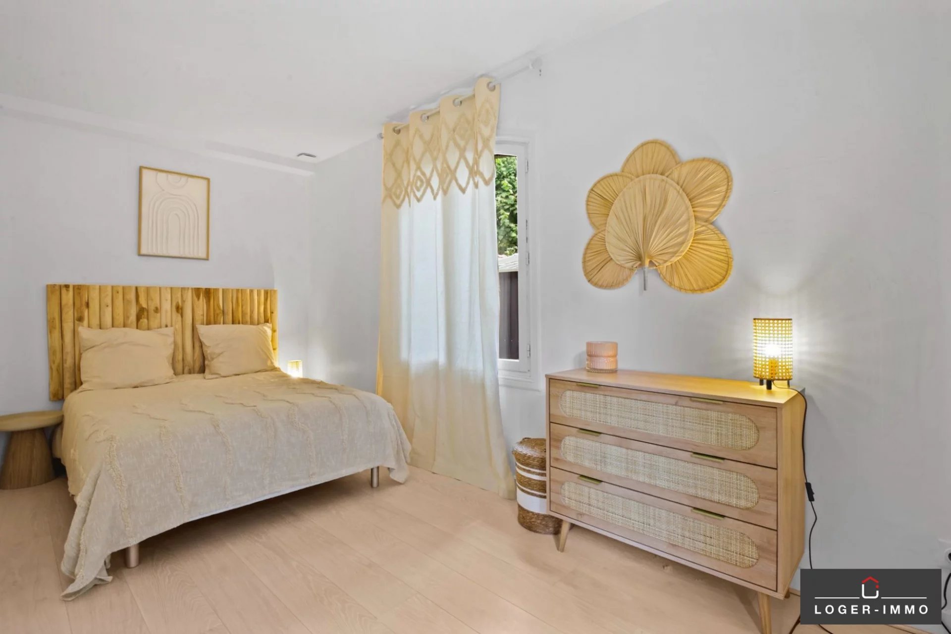 La maison s'ouvre sur un séjour convivial doté d'une cheminée décorative, prolongé par une cuisine ouverte aménagée et équipée. La partie nuit comprend deux chambres, une salle d'eau et des WC indépendants.