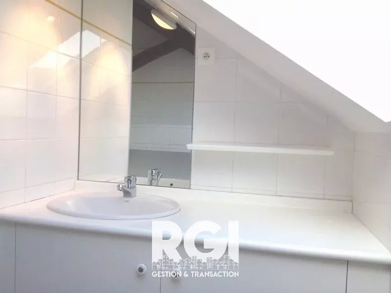 Au cœur de village, maison de ville 3 pièces: entrée, séjour donnant sur grande terrasse, cuisine ouverte aménagée, cagibi. A l'étage: palier, 2 chambres avec placard, salle de bains, toilettes séparées. Box fermé. Jardinet. Chauffage individuel électrique. Libre à partir du 31/08/2020. R G I LE MESNIL SAINT DENIS