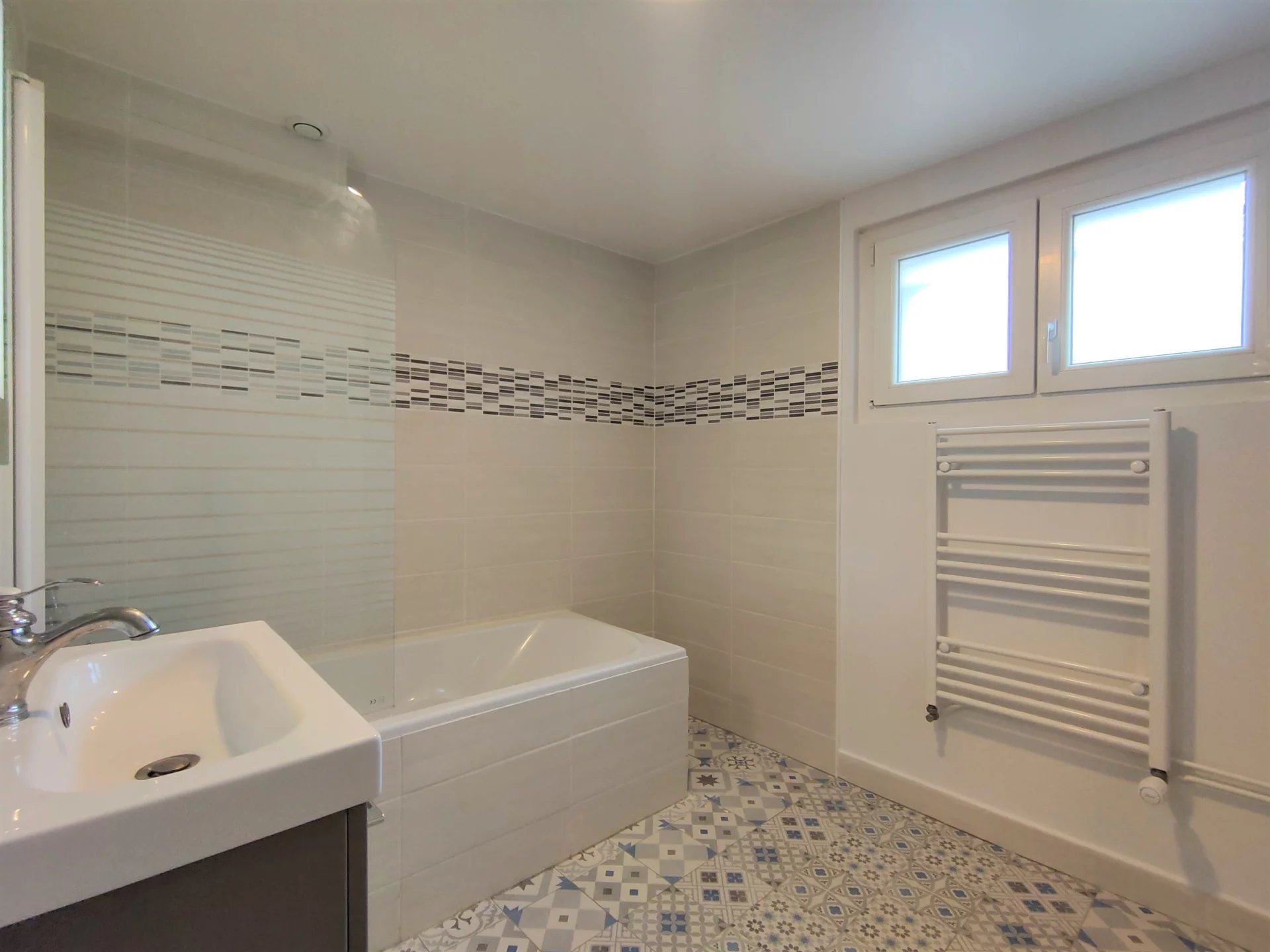 LE PECQ - ROUTE DE L'ETANG-LA-VILLE - Limite Domaine de Grandchamp et Saint-Germain-en-Laye - EXCLUSIVITE - Proximité immédiate en bus Lycée International, RER A et Gare SNCF Ligne L - Maison sur 2 niveaux intégralement rénovée d'environ 96 m² habitables se composant d'une entrée, un grand séjour donnant sur terrasse, une cuisine équipée, 3 chambres, SDD, SDB, WC et buanderie. Un parking extérieur privatif sécurisé. Stores électriques et fibre internet. Charges incluant l'eau froide. Honoraires dus par le locataire selon durée et type de bail : bail résidence principale personne physique : 1 152€. En cas de bail code civil (bail société) : 14% TTC du loyer annuel charges comprises. A VISITER AVEC L'AGENCE INTERNATIONALE !