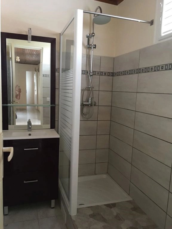 - au rdc d'un beau séjour avec cuisine US aménagée et équipée (plaque, hotte, four) une buanderie et une chambre avec salle d'eau, toilette et terrasse.