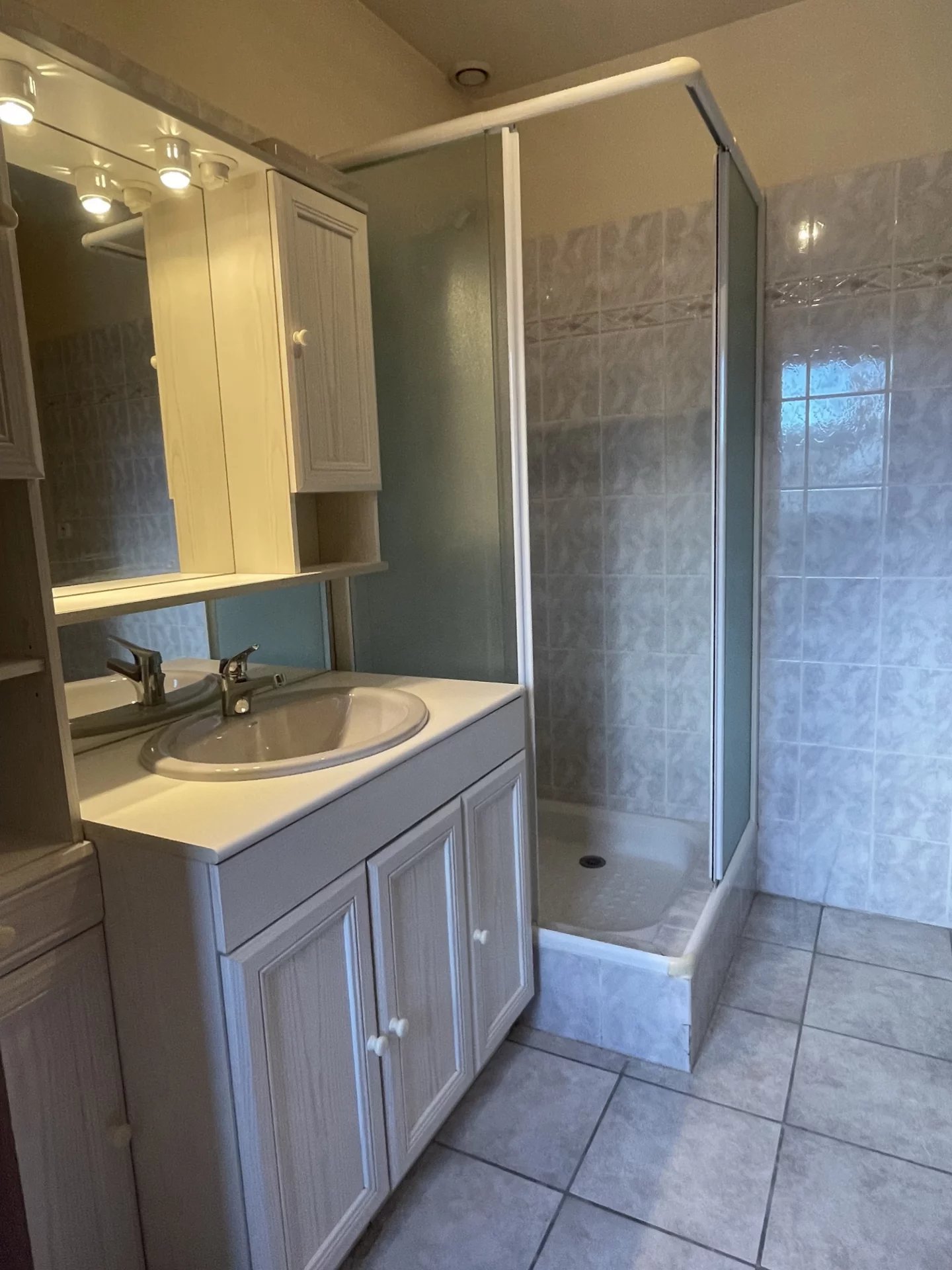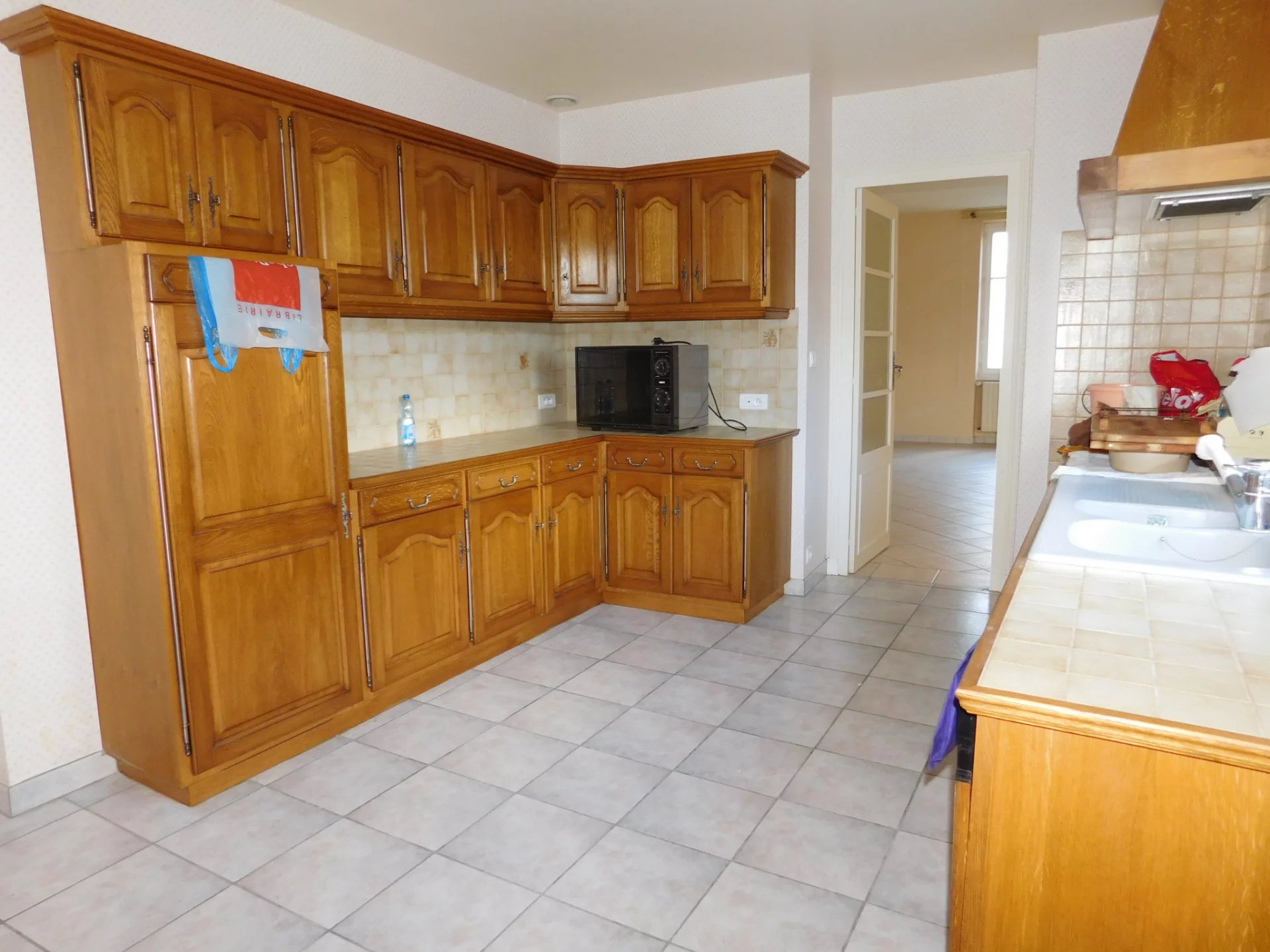 Sur 1280 m2 clos, MAISON comprenant : Entrée, vaste salon-séjour avec cheminée et insert, cuisine aménagée et équipée (Hotte-Plaque-Four), dégagement desservant 4 chambres, salle de bains et salle d'eau 2 wc. Cave.