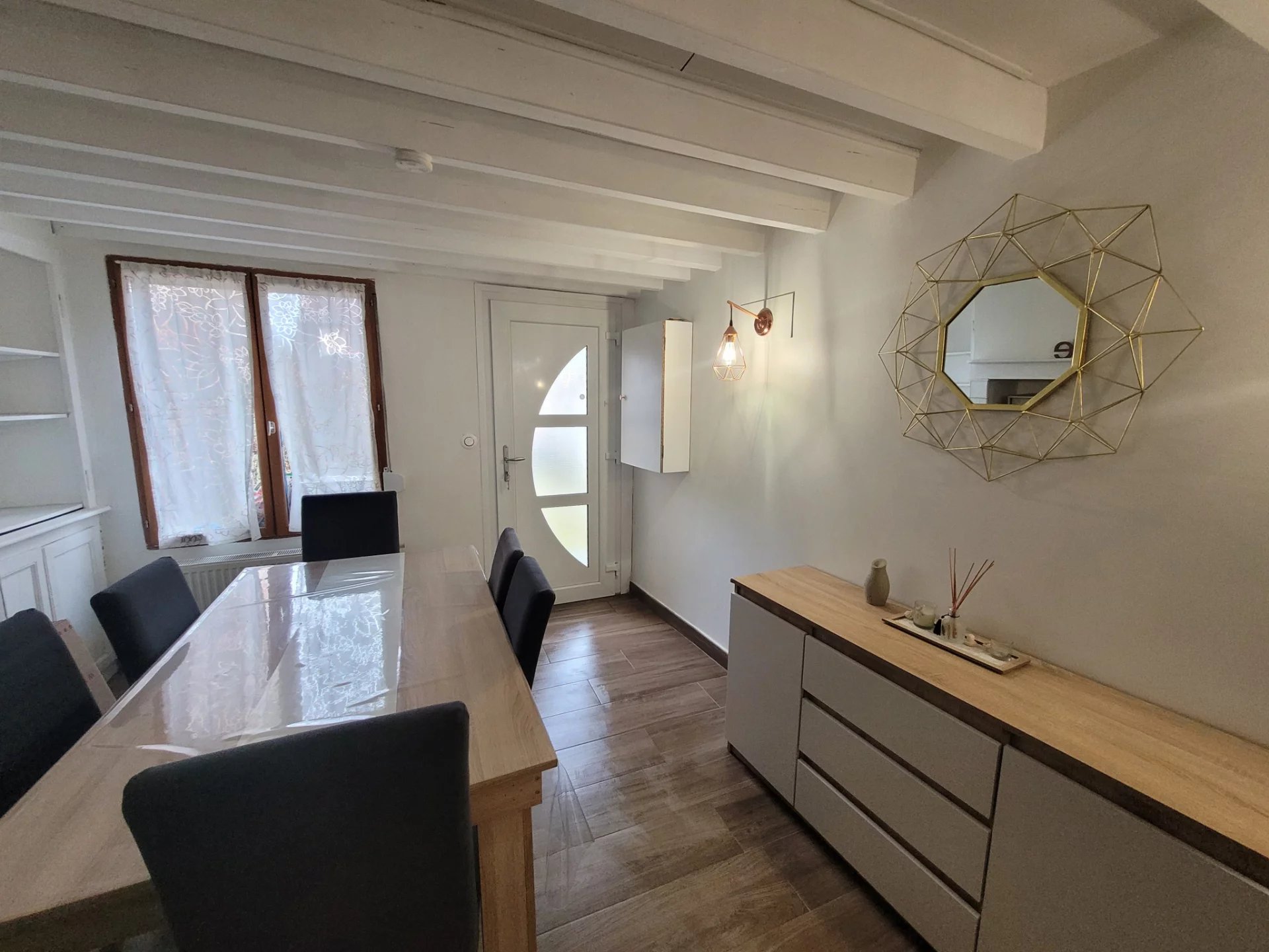 Re 776G: Maison de type 3 meublée située à Pont-de-Metz, proche du CHU Sud dans un secteur très calme comprenant: petite cour avant fermée par portail pour le stationnement d'un véhicule, salle à manger, séjour avec grande baie vitrée vue jardin, cuisine toute équipée (ilôt central, table de cuisson, hotte, lave-vaisselle, réfrigérateur-congélateur, four et micro-ondes integré), deux chambres, salle d'eau avec meuble vasque et douche, wc individuel avec lave-linge - Terrasse donnant accès a deux petites dépendances et au grand jardin - Superficie 71m2 - LOYER 1050EUR + provisions 30EUR (Entretien annuel chaudière & TOM) - LIBRE DEBUT FEVRIER - Ref 776G