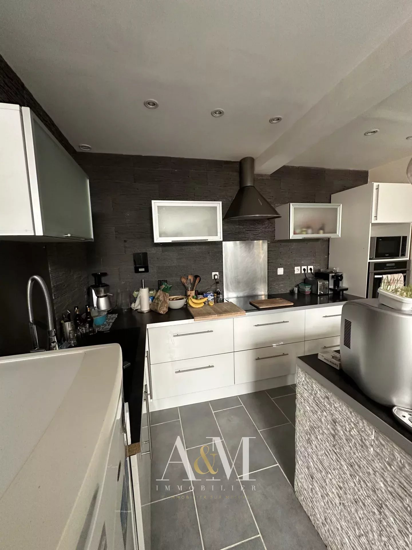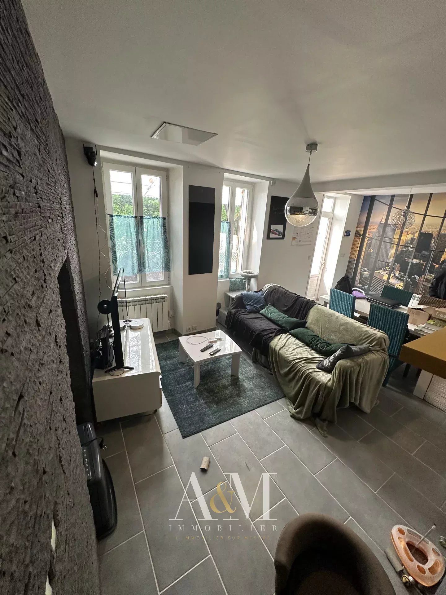 Maison de ville T3 comprenant séjour avec coin cuisine aménagée et équipée (plaque + hotte +four), à l'étage 1chambre avec dressing, salle d'eau , WC.
