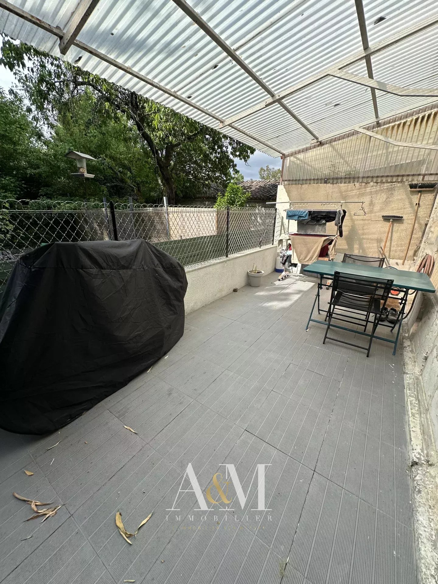 terrasse, jardin non attenant et place de parking, le tout au bord de l'eau.
