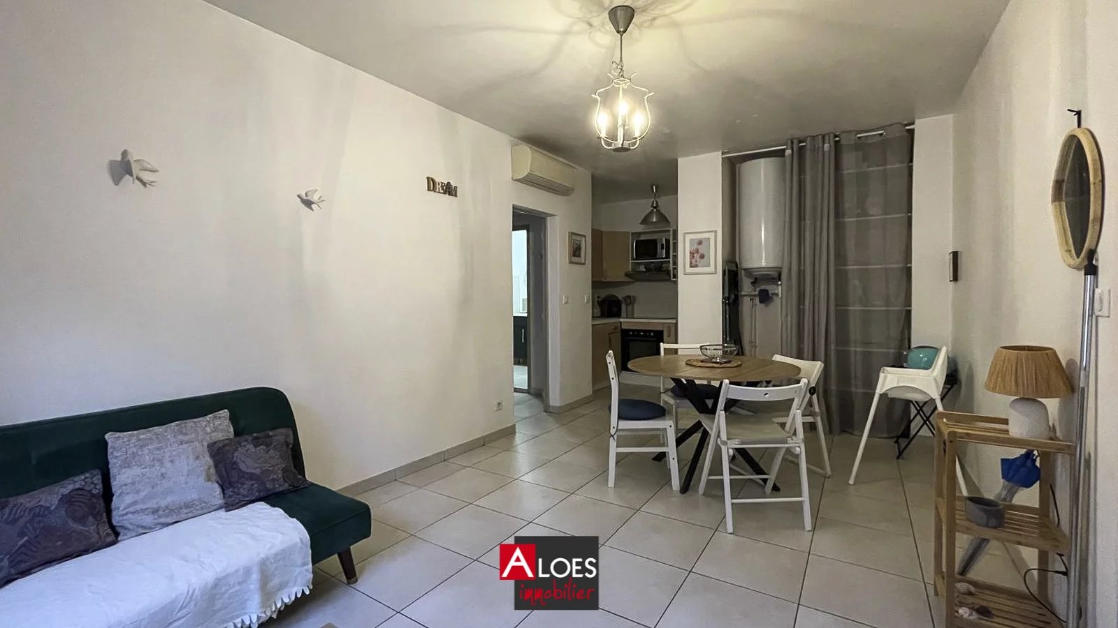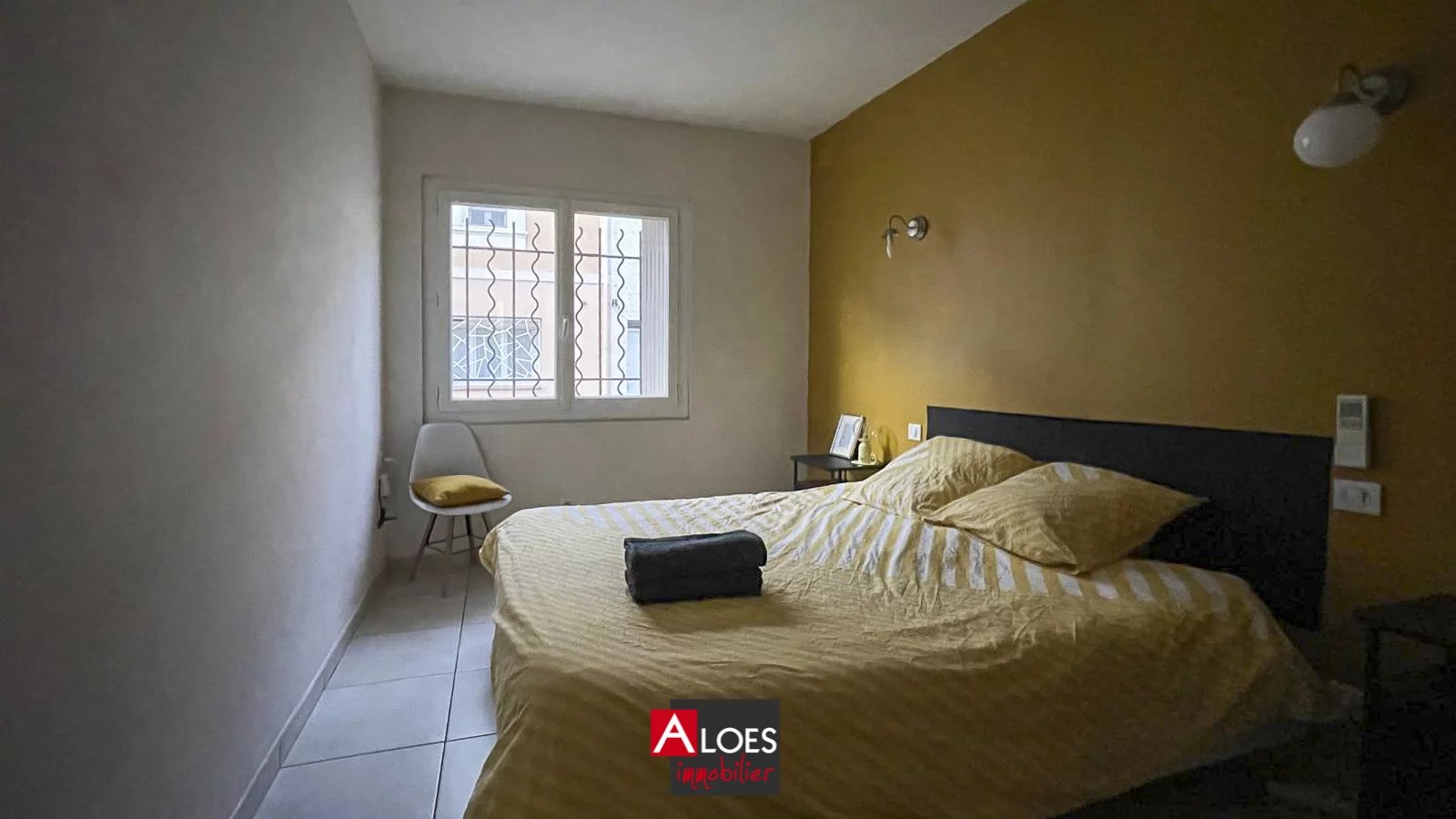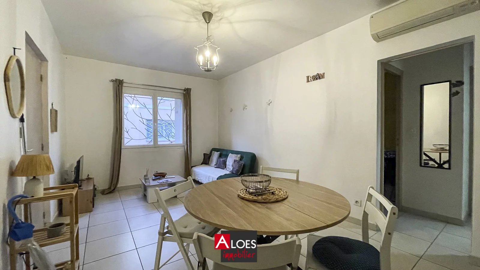 À Aigues-Mortes, à proximité immédiate des remparts, appartement T2 situé en rez-de-chaussée d’une petite copropriété de trois lots.