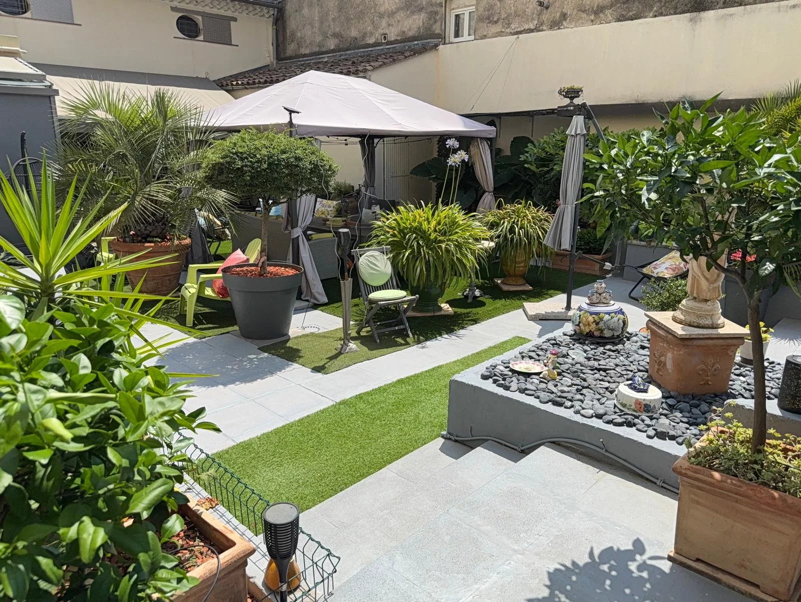 Terrasse exceptionnelle d’environ 240 m² et pièce annexe de 12 m² (cuisine d’été ou autre usage).