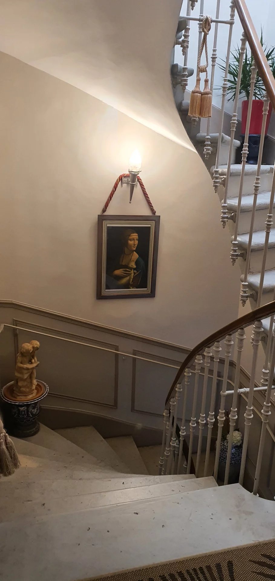 Au premier étage : un appartement raffiné, entièrement rénové, comprenant un salon d’environ 38 m², une salle à manger d’environ 25 m², une cuisine indépendante, quatre chambres, deux salles d’eau, deux WC ainsi qu’une buanderie.