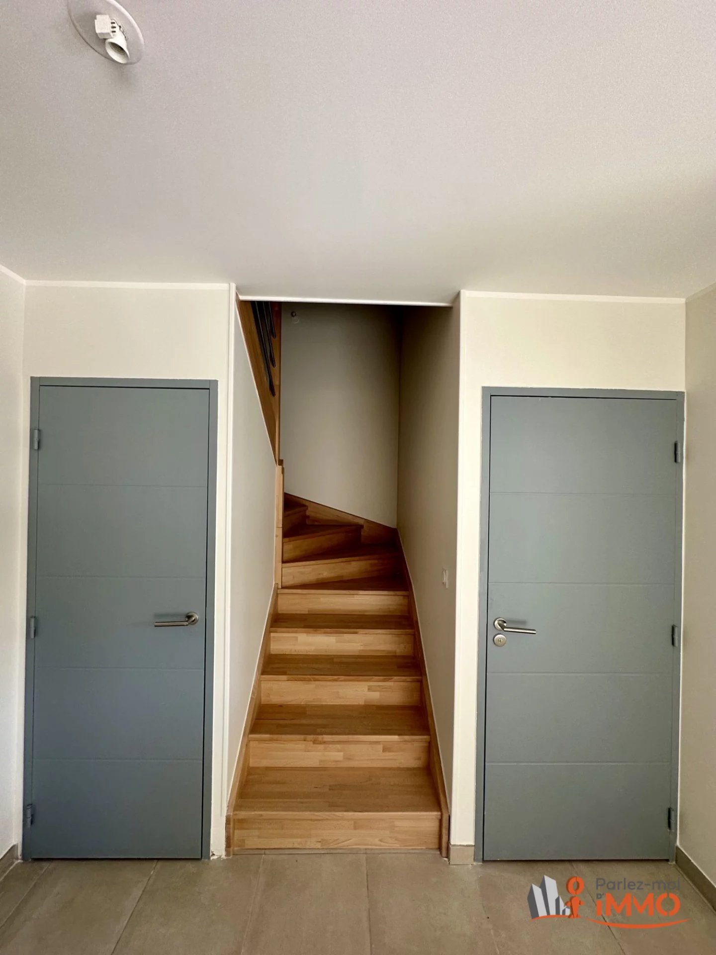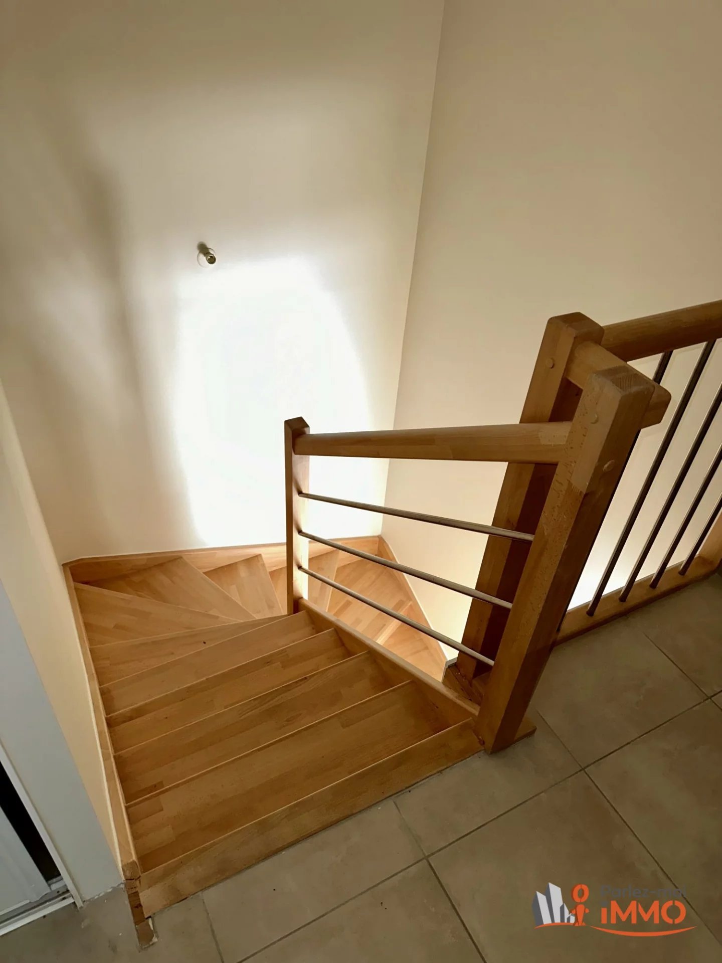 A l'étage, une salle d'eau moderne avec douche à l'italienne, un WC séparé, un placard supplémentaire ainsi que 3 grandes chambres dont une avec sa propre terrasse offrant une vue dégagée et imprenable. Une place de parking en extérieur et 1garage en sous-sol sont inclus. Possibilité de bénéficier d'un deuxième garage motorisé pour 15 000.