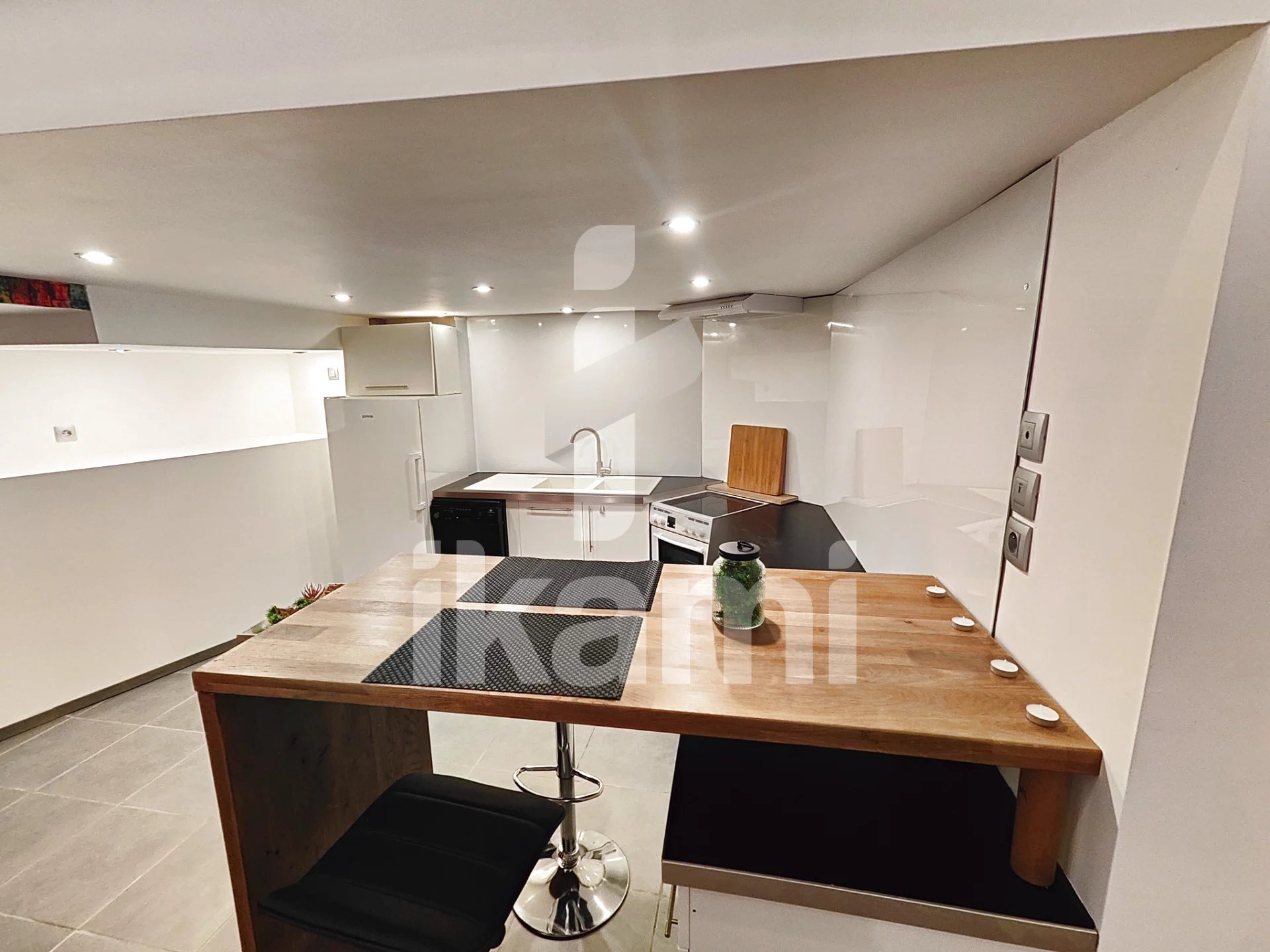 Entièrement rénové avec goût, il se compose d'une cuisine aménagée ouverte sur une belle pièce de vie, offrant un espace chaleureux et convivial, sublimé par une belle hauteur sous plafond qui apporte volume et caractère. La chambre, aménagée en mezzanine, se situe au premier niveau et confère un charme indéniable à l'ensemble. Une salle de douche complète ce bien.