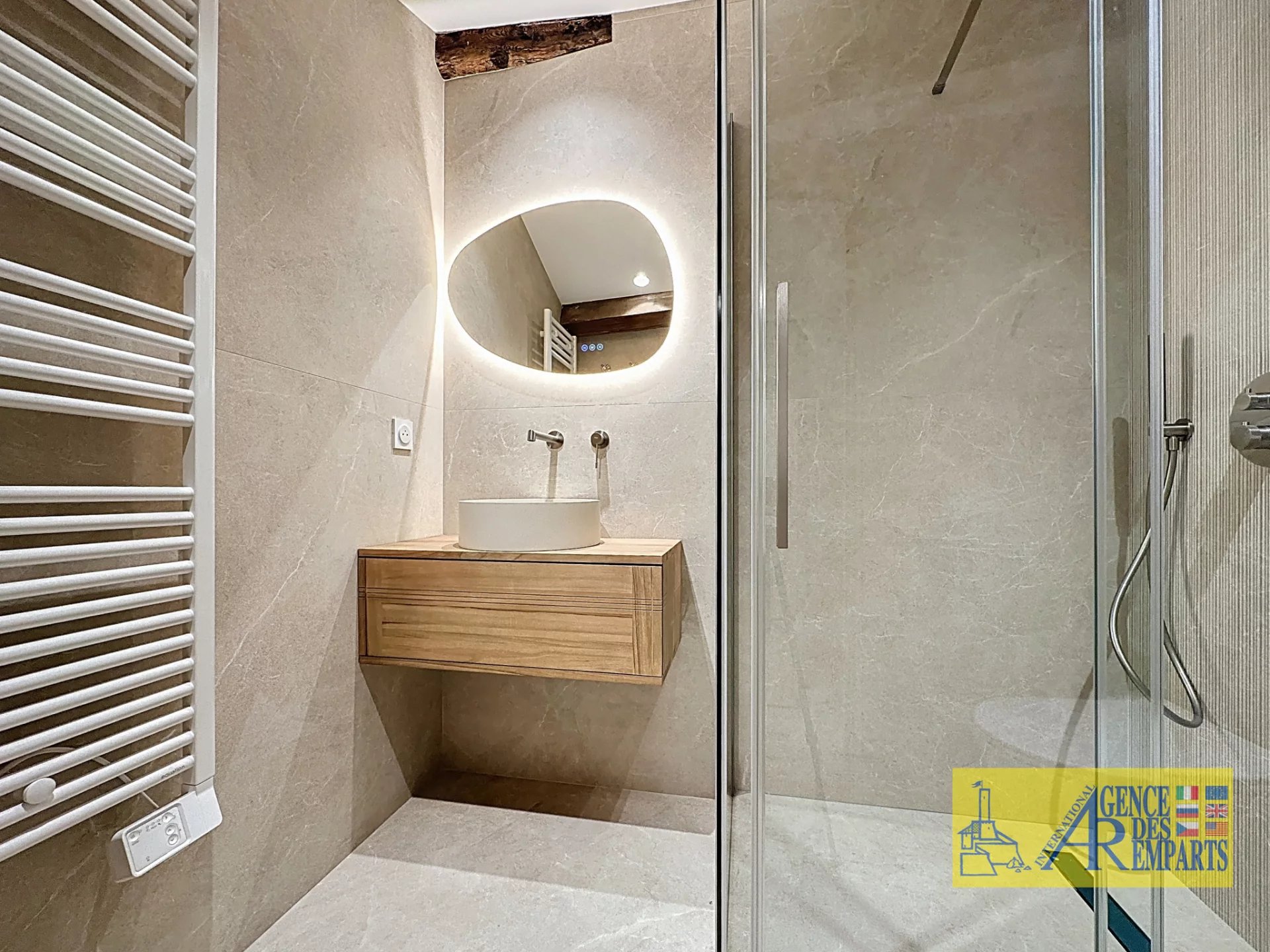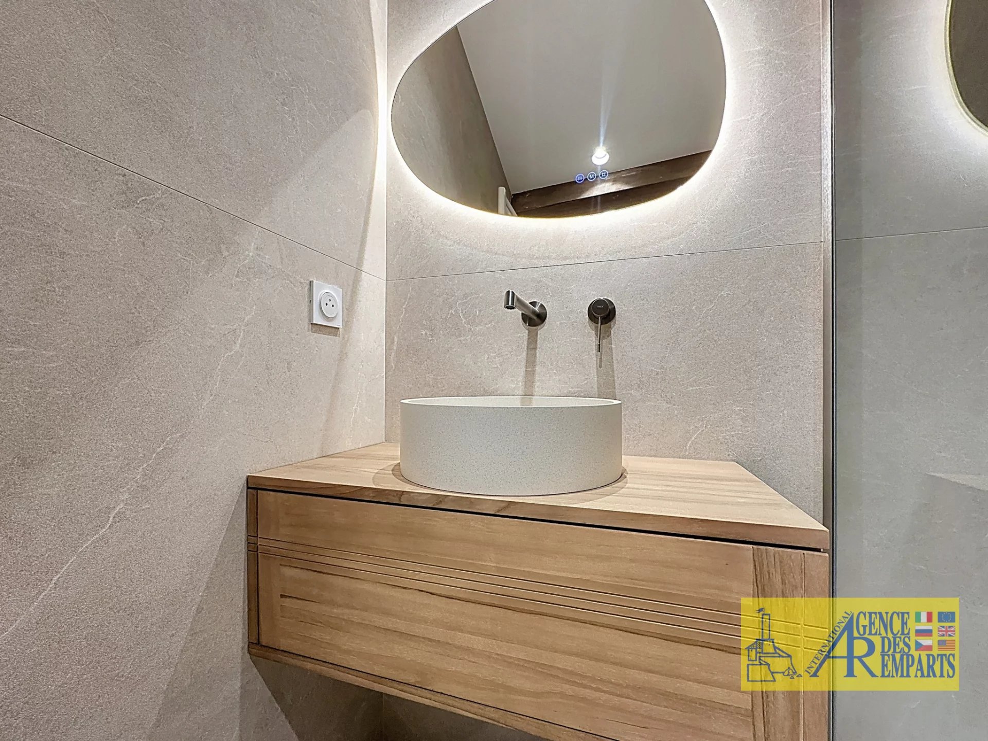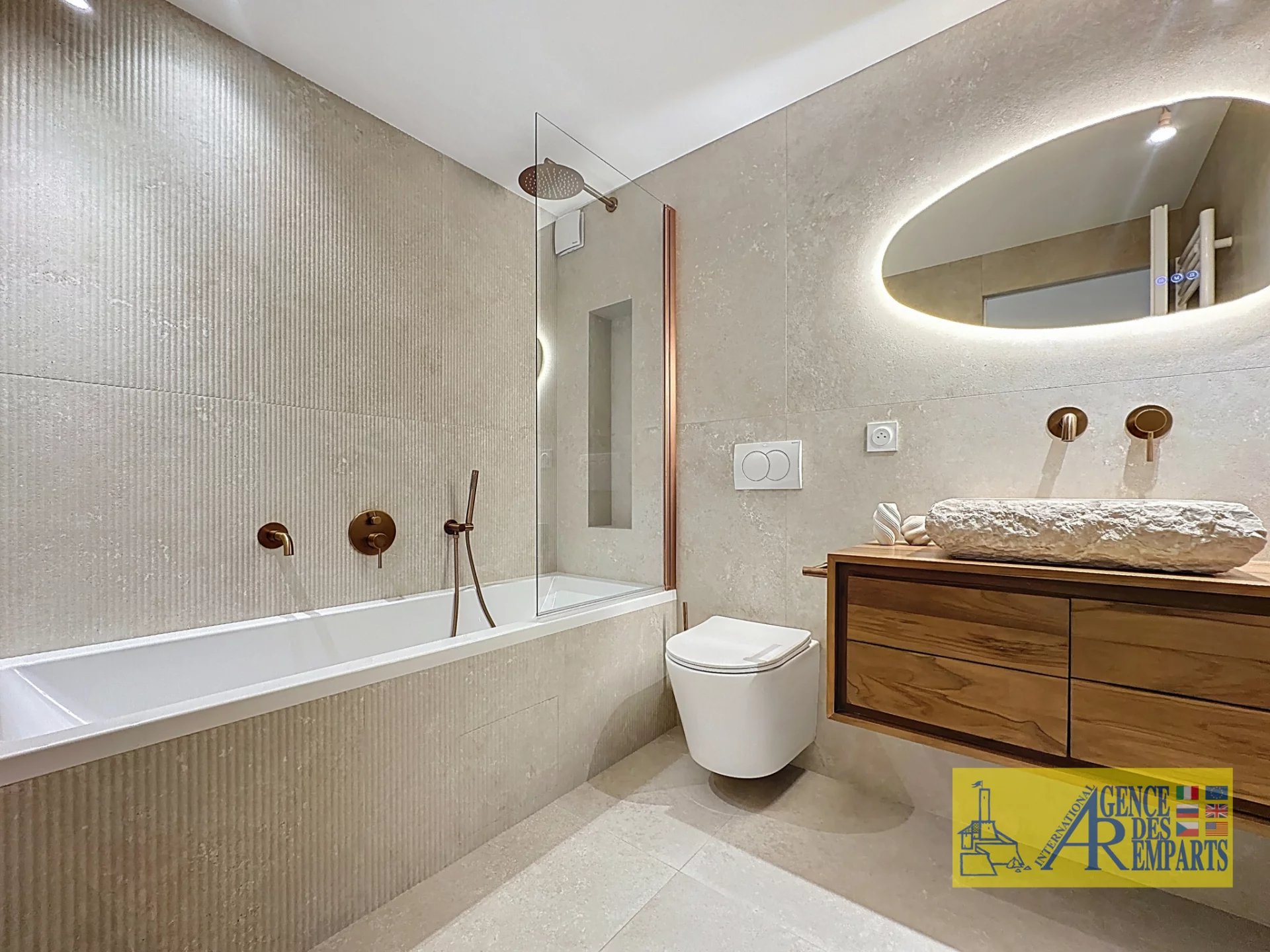 Situé au dernier étage d'un immeuble bien entretenu sur la belle Place Nationale, cet appartement lumineux et élégant a été entièrement rénové avec des matériaux de qualité et une attention particulière portée aux détails.