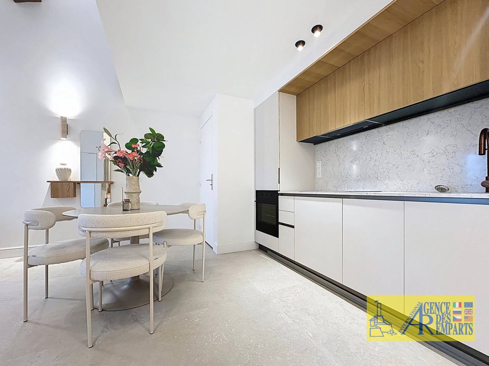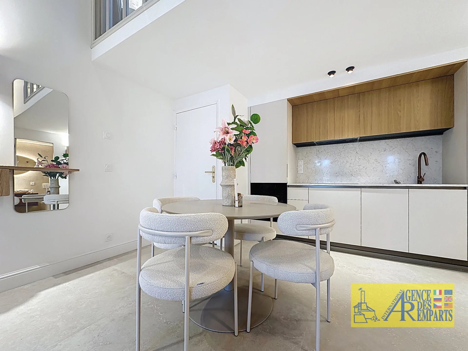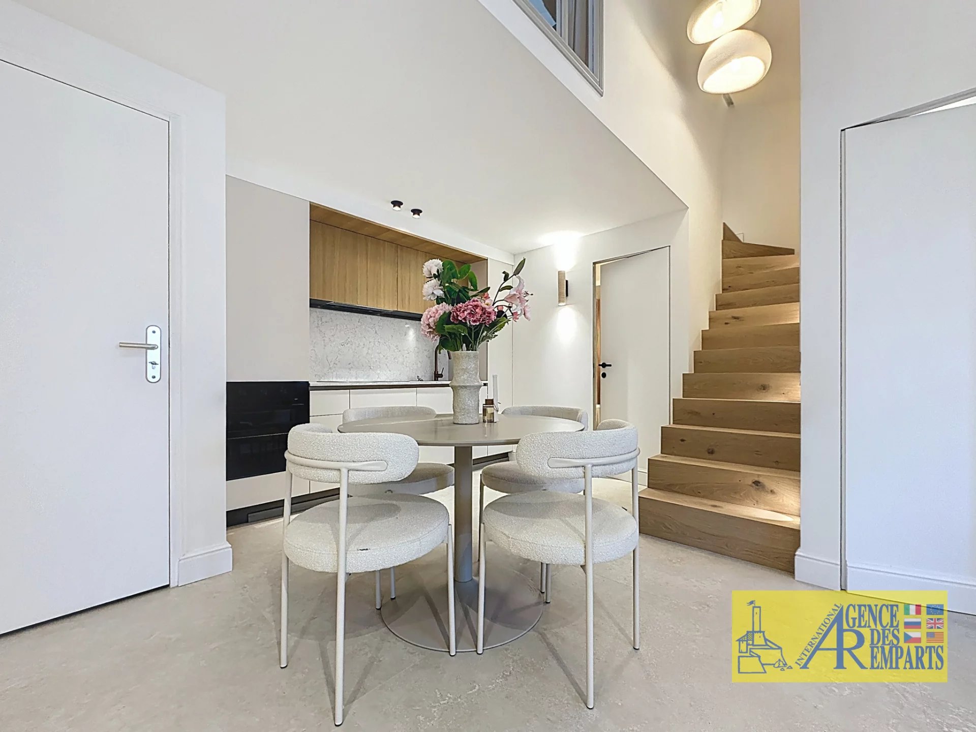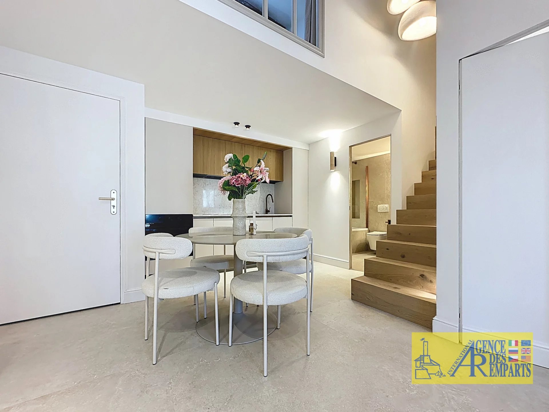 Le séjour s'ouvre sur une cuisine moderne et ouverte au design soigné, offrant un espace de vie à la fois naturel et fonctionnel. La mezzanine intelligemment aménagée apporte un volume supplémentaire et confère à l'appartement un caractère distinctif. Le bien dispose de deux chambres ainsi que de deux salles de bains aux finitions épurées, assurant un réel confort lorsque famille et amis séjournent ensemble.