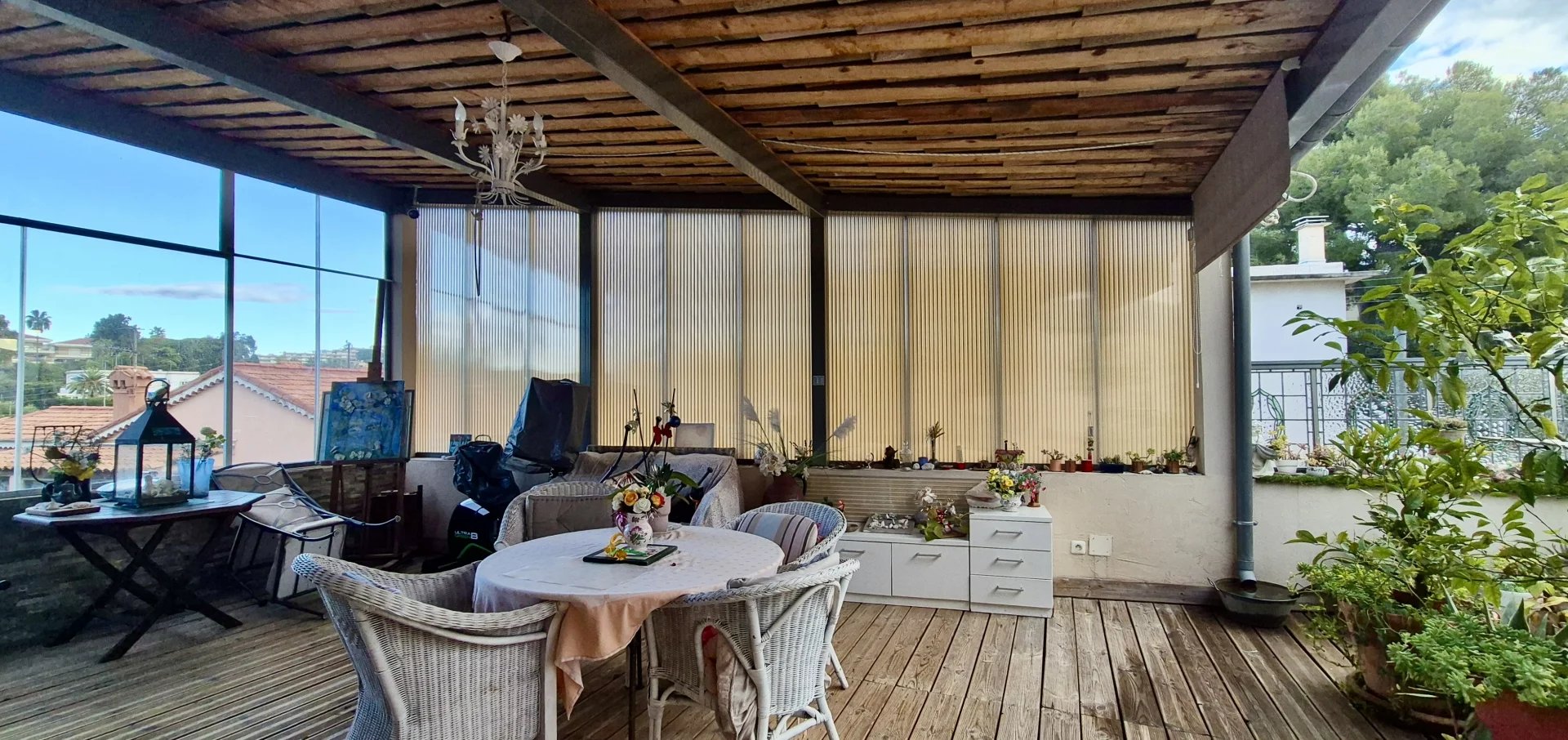 L'appartement principal lui même situé au 1er étage est accessible via un escalier extérieur et débouchant sur une première superbe terrasse couverte de près de 50m2 dont vous pourrez profiter toute l'année !