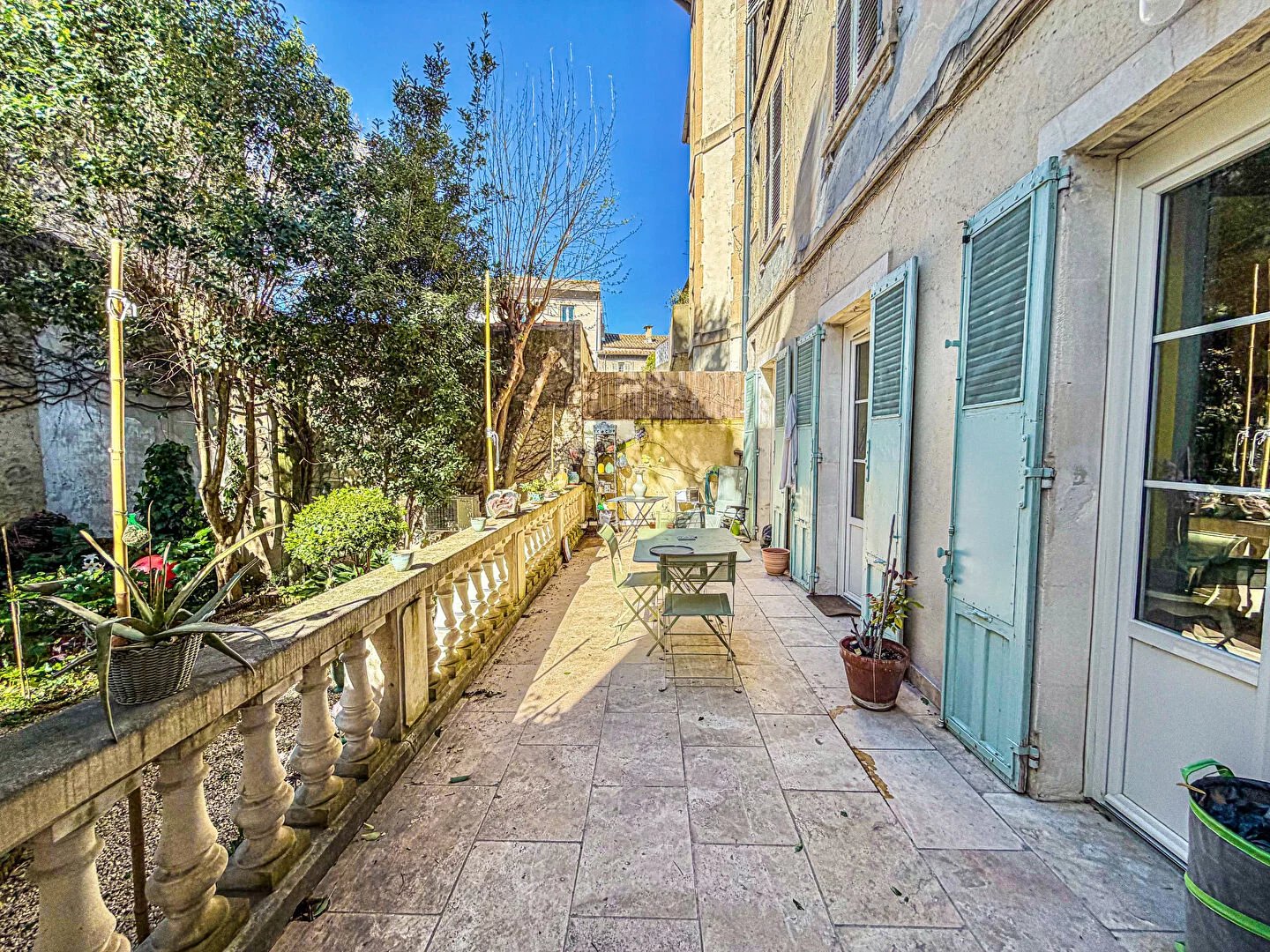 Dès l'entrée, les volumes généreux et la belle hauteur sous plafond imposent une sensation d'espace. Ce bien baigné de lumière a conservé son âme avec ses cheminées d'époque, tout en s'adaptant aux exigences actuelles : la vaste pièce de vie est entièrement climatisée, vous garantissant une fraîcheur idéale lors des journées ensoleillées.