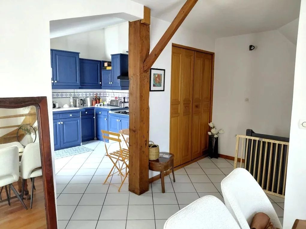 Séjour d'environ 33m2 ouvert sur cuisine équipée, buanderie, WC.