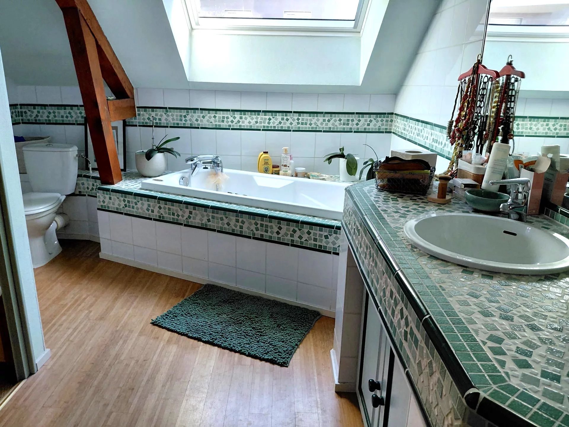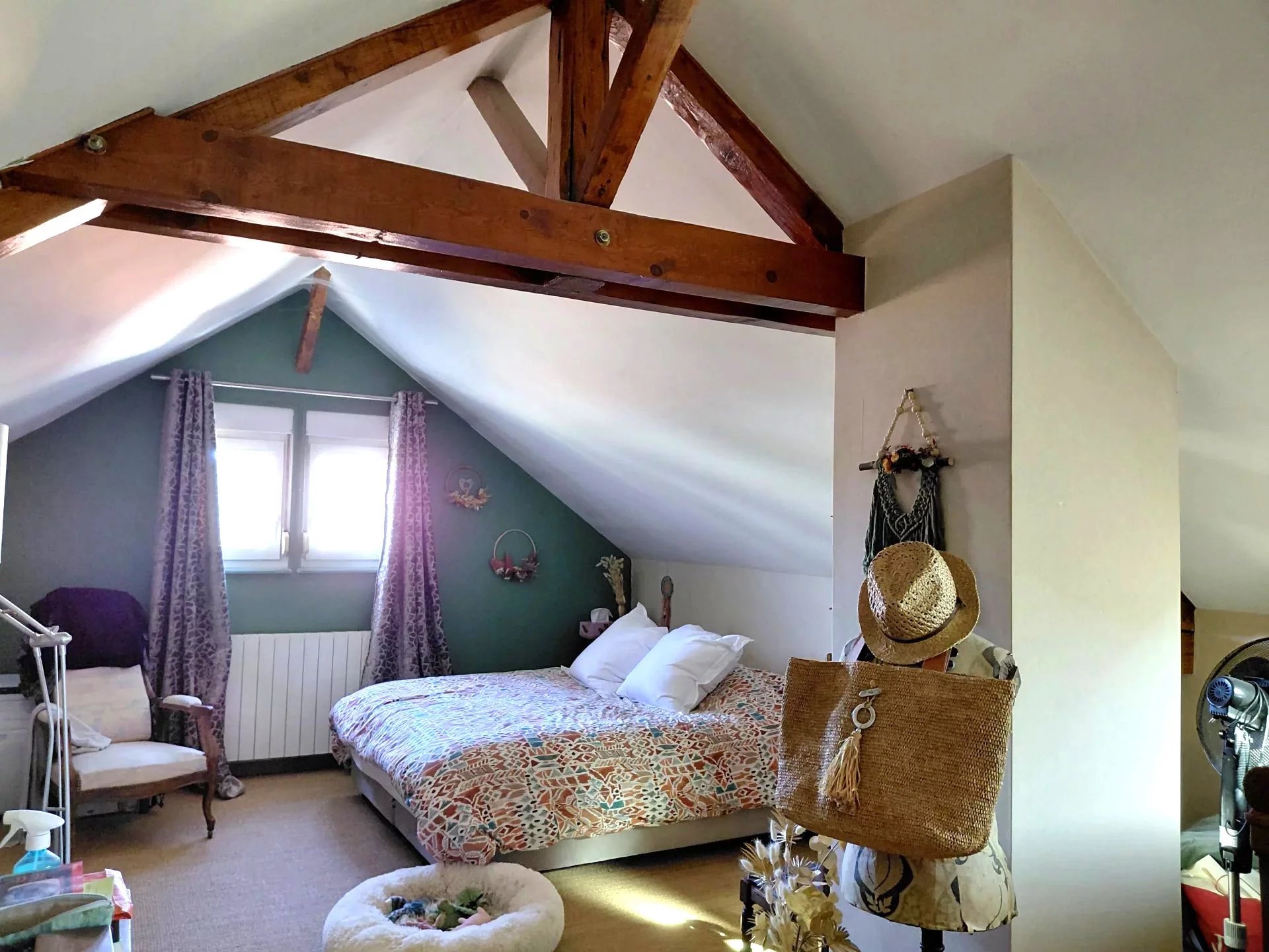 Vaste chambre de 19m2, bureau, salle de bains avec WC.