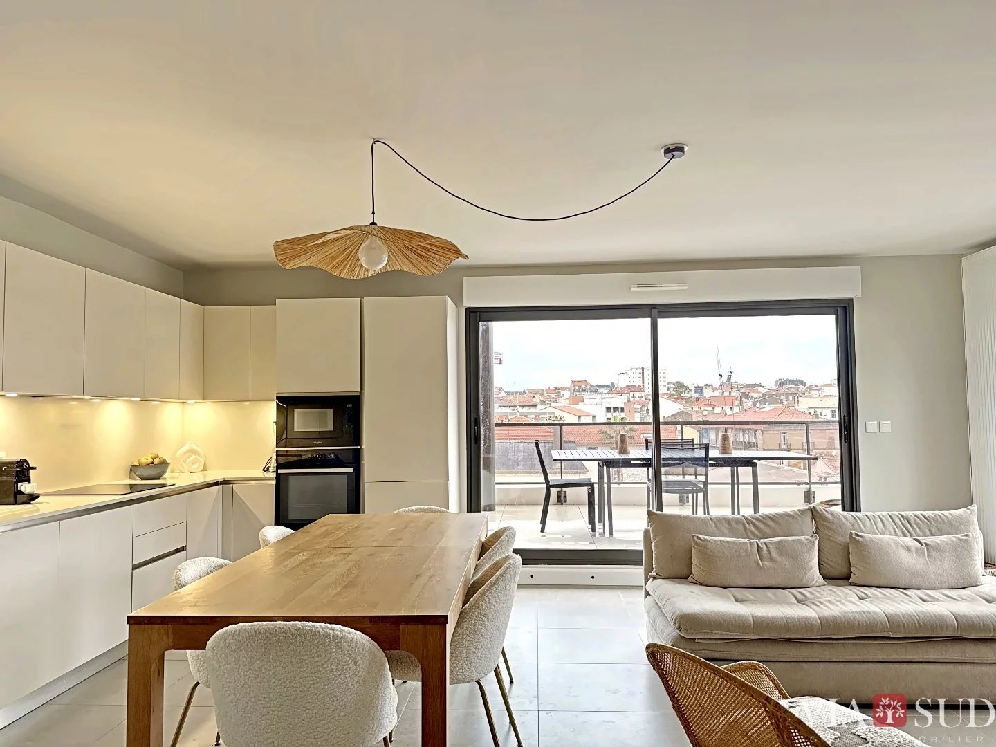 390 000 €Appartement de standing en duplex avec grande terrasse et vues dégagées Situé dans le quartier recherché des Arènes / Duguesclin, à proximité immédiate du centre-ville, cet appartement récent séduit par la qualité de ses prestations, son calme et son ouverture sur lextérieur. Implanté en étage élevé avec ascenseur, ce duplex de standing développe environ 84 m² habitables, prolongés par une magnifique terrasse denviron 35 m² agrémentée de jardinières, véritable prolongement de la pièce de vie. Niveau principal espace jour La pièce de vie offre un volume lumineux et fluide, avec une cuisine contemporaine entièrement équipée, ouverte sur le séjour et directement connectée à la terrasse, créant un ensemble convivial et fonctionnel. Ce niveau comprend également un espace buanderie et un toilette indépendant Étage espace nuit À létage, un dégagement dessert trois chambres, dont deux équipées de placards, bénéficiant de très grandes ouvertures offrant des vues dégagées et spectaculaires, une salle deau avec douche, un second toilette indépendant (WC suspendu) Prestations : une climatisation dans le séjour et à létage, chauffage central au gaz et production deau chaude, menuiseries aluminium, volets roulant, Ascenseur... Un double garage boxé complète ce bien, un atout rare et recherché en cur de ville. Lenvironnement est remarquablement calme, la copropriété de standing. Un appartement rare, pensé pour ceux qui recherchent un mode de vie urbain confortable, une vraie qualité de distribution et un extérieur généreux, dans lun des secteurs les plus prisés de Béziers. Les informations sur les risques auxquels ce bien est exposé sont disponibles sur le site Géorisques : www.georisques.gouv.fr. Bien soumis au statut juridique de la Copropriété. Nb de lots : 21. Charges annuelles de copropriété (Montant moyen annuel quote-part du budget prévisionnel vendeur) : 1 260 . Pas de procédure en cours. Honoraires à la charge du vendeur