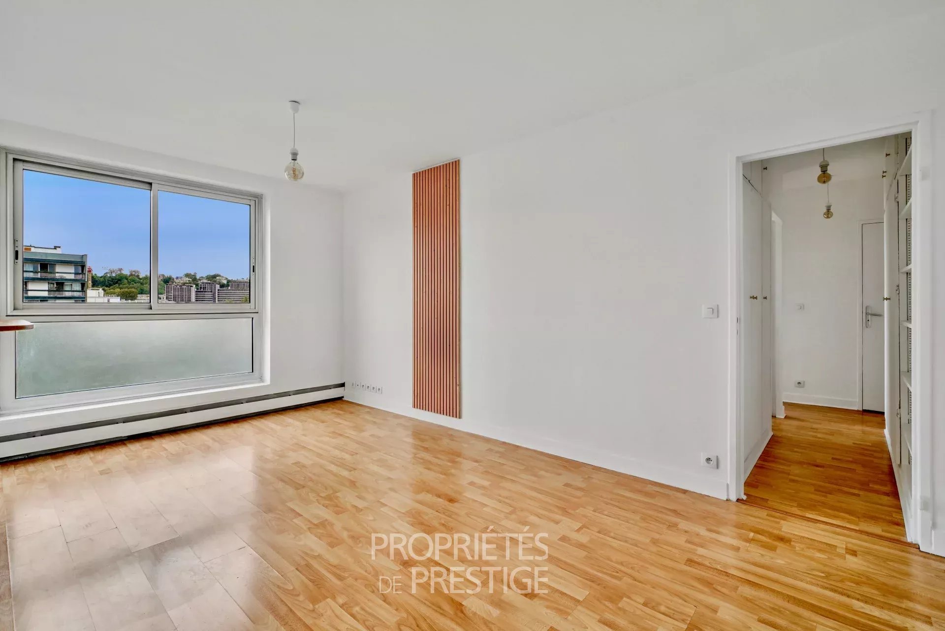 Situé au 8ème étage, exposition ouest, sans vis à vis, il offre une superbe vue dégagée sur le parc de Saint-Cloud.