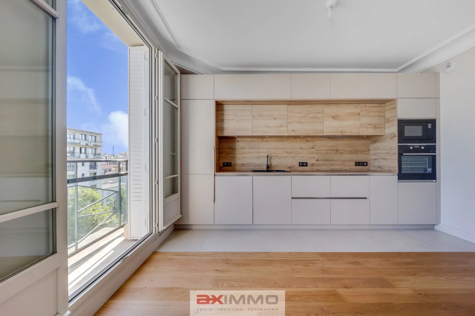Au 6ème étage avec ascenseur, il se compose d'une entrée spacieuse avec rangements intégrés, d'un séjour lumineux avec accès à un balcon privé offrant une vue latérale sur la tour Eiffel. Cuisine moderne ouverte, entièrement aménagée et équipée.
