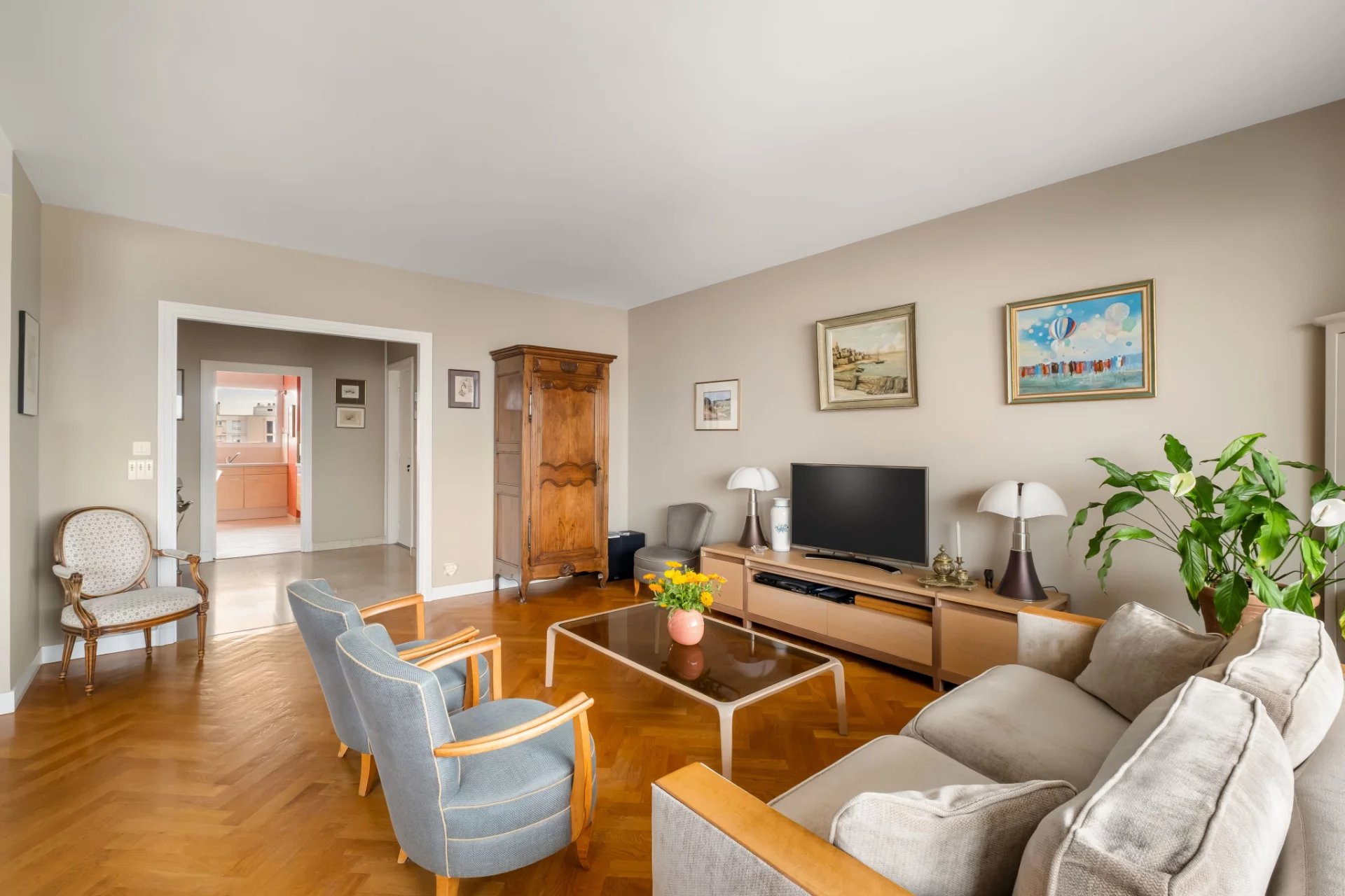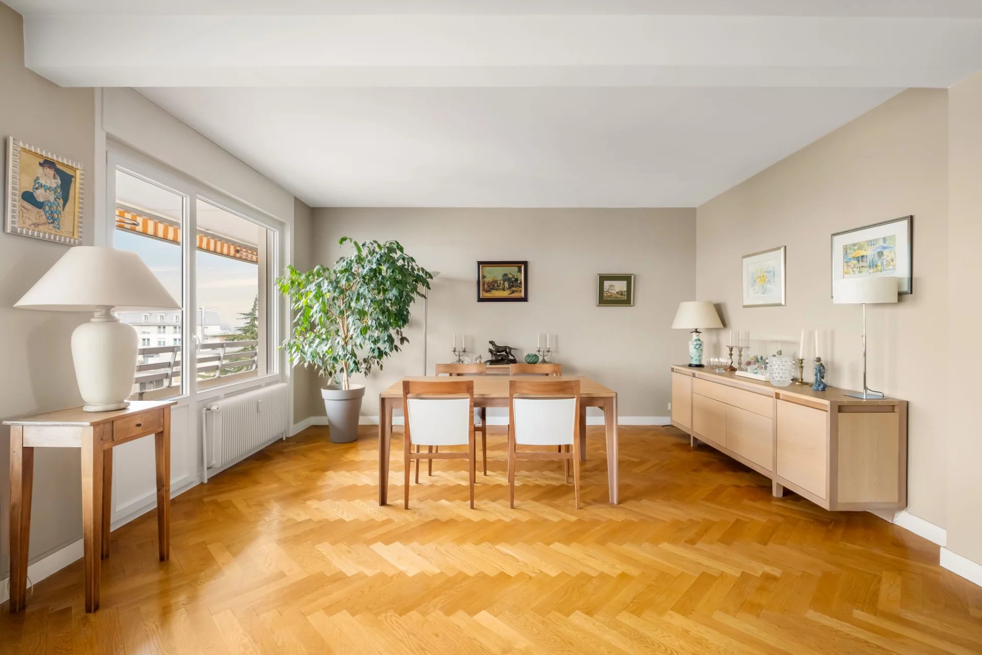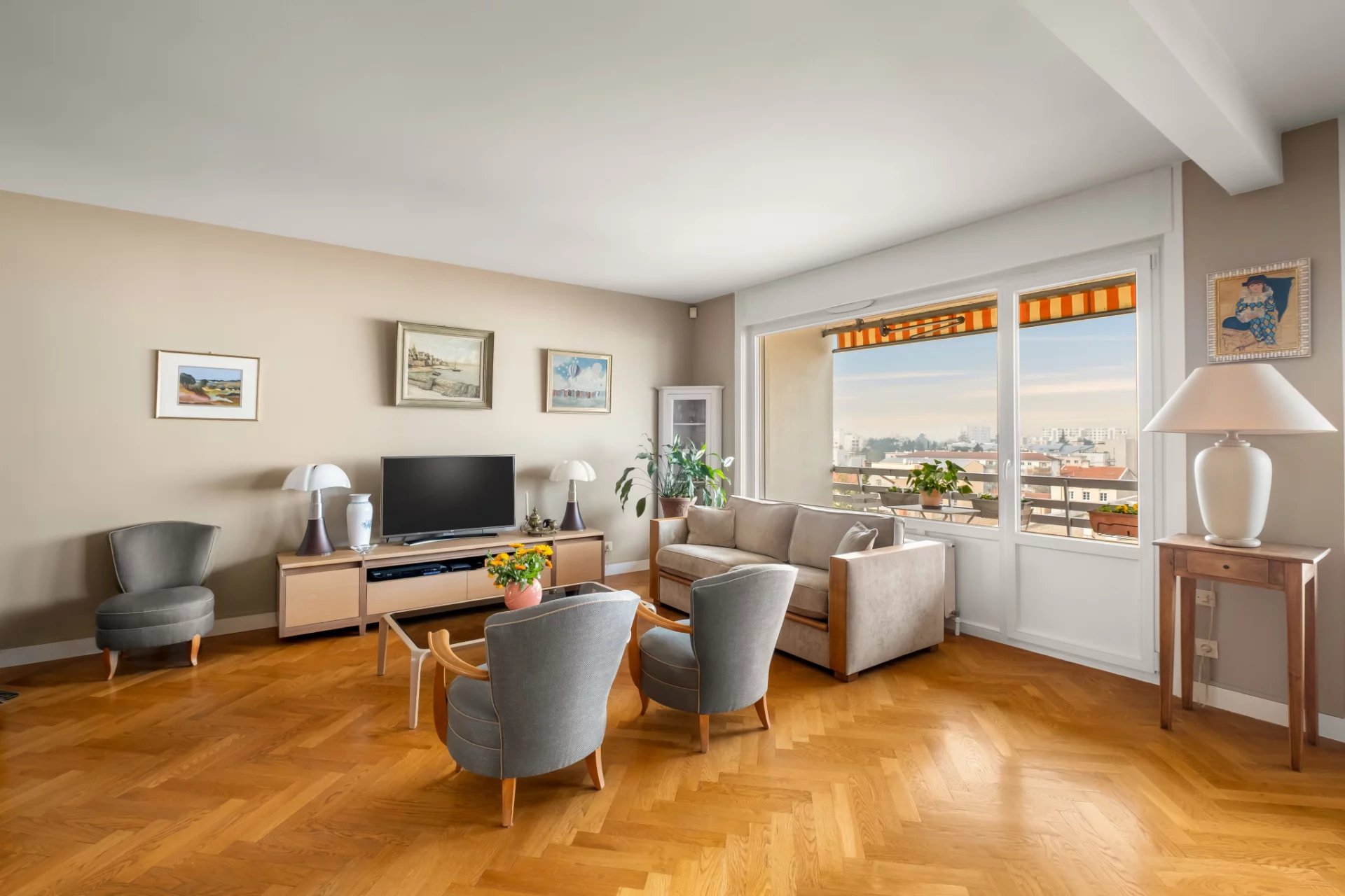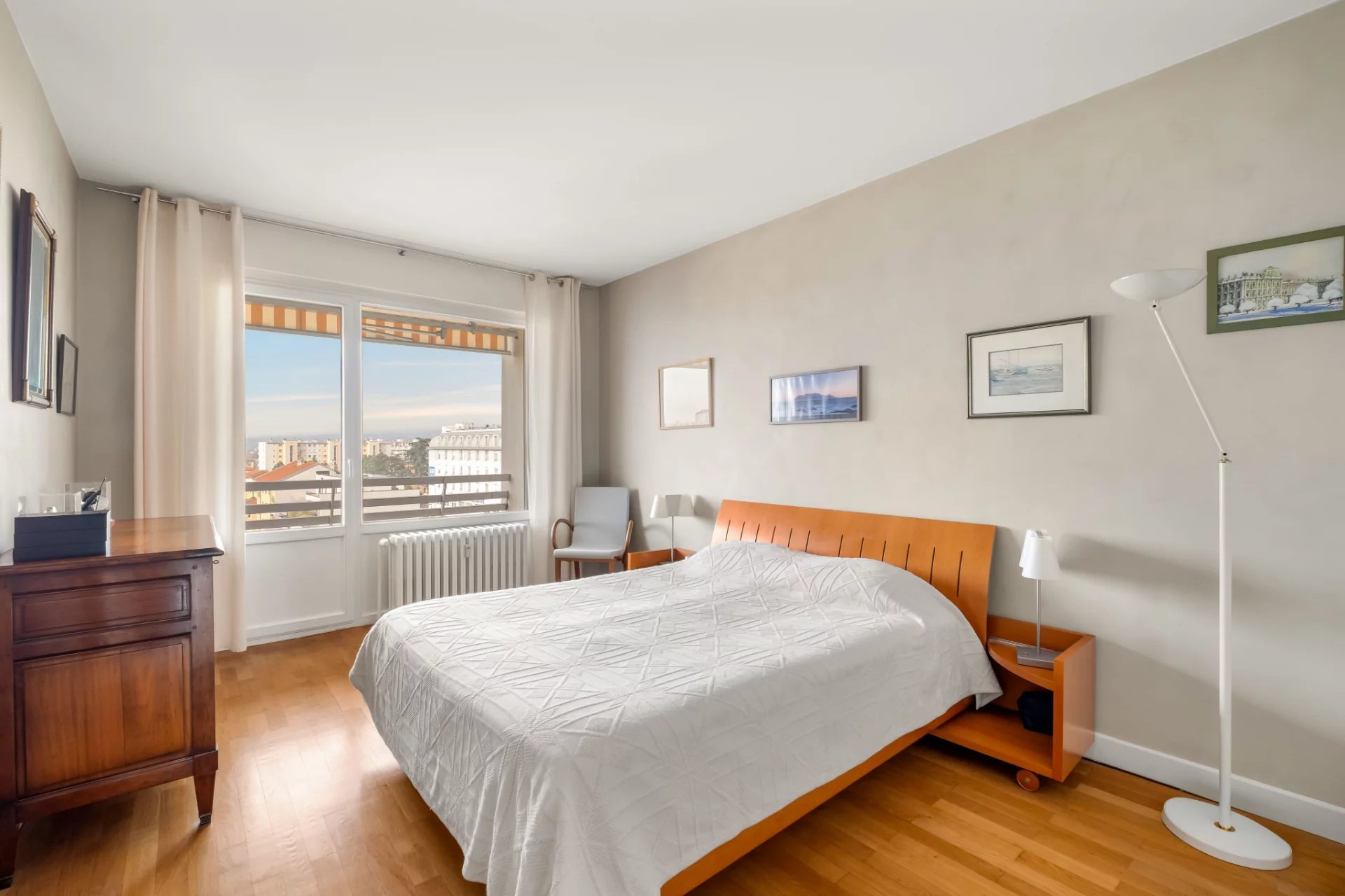 Exclusivité Croix Rousse Immobilier. Nouveau. Découvrez un appartement exceptionnel de 120 m2 situé au 6e et dernier étage d'une résidence hautement recherchée à Caluire, parfaitement sécurisée, avec gardien, espaces verts soignés, parking privatif extérieur et stationnement invité. Ce dernier étage rare bénéficie d'une lumière plein Ouest grâce à ses immenses baies vitrées, d'une pièce de vie très agréable grâce à ses grandes baies vitrées, d'un balcon accessible depuis toutes les pièces, d'une cuisine aménagée et équipée, d'une suite parentale élégante avec sa salle de bain, de deux chambres généreuses, d'une salle d'eau et de toilettes séparés. Une place de stationnement extérieur et une cave viennent compléter ce bien d'exception. Traversant Est Ouest. À proximité immédiate du métro Cuire, des commerces, des écoles et de toutes les commodités, l'emplacement offre un cadre de vie recherché, pratique et raffiné. L'appartement a bénéficié d'une rénovation de qualité, permettant une installation immédiate dans une atmosphère élégante, lumineuse et parfaitement entretenue. Notre avis : un dernier étage de 120 m2 avec vues dégagées, baies vitrées, balcon intégral et emplacement stratégique au coeur de Caluire constitue une opportunité unique pour un acquéreur en quête d'espace, de lumière et de qualité. À noter : Compris dans les charges le chauffage urbain offrant un confort thermique stable, et l'eau froide et chaude, permettant une optimisation des coûts et une approche plus responsable qu'une production individuelle.
