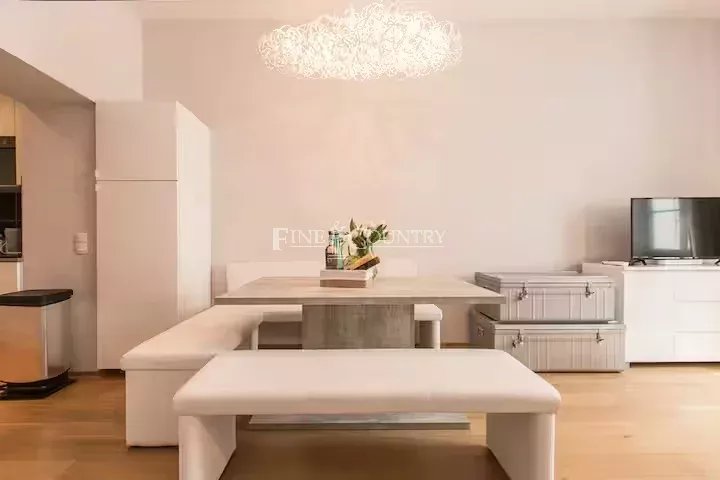 L’appartement dispose de deux chambres, ainsi que d’une salle de douche moderne et de WC séparés.