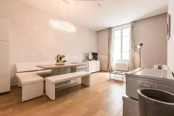 Situé au cœur de la Banane, rue Saint-Honoré à Cannes, derrière l’Hôtel Majestic et à seulement 1 minute à pied du Palais des Festivals et de la Croisette, cet appartement bourgeois magnifiquement présenté bénéficie de hauts plafonds et offre environ 55m².