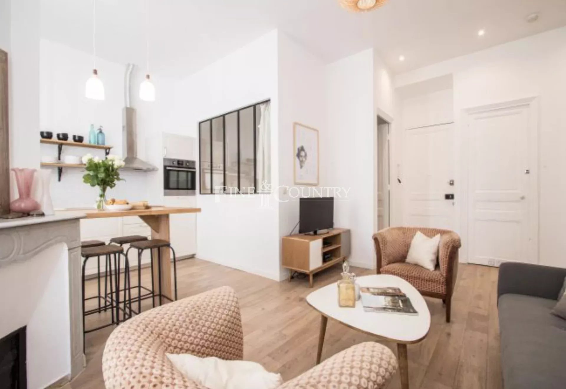 REF: 032026-407. Cet appartement plein de charme a été rénové avec goût et se situe au 1er étage d’un immeuble sans ascenseur, à seulement quelques pas de la place principale du vieux Cannes, dans le quartier du Suquet.