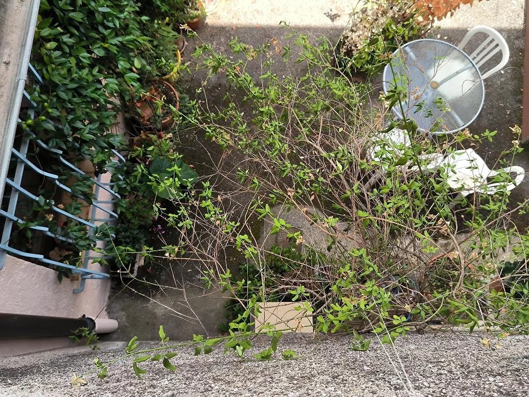 Petit espace extérieur partagé, idéal pour repas, apéro ou pause café à l’ombre.