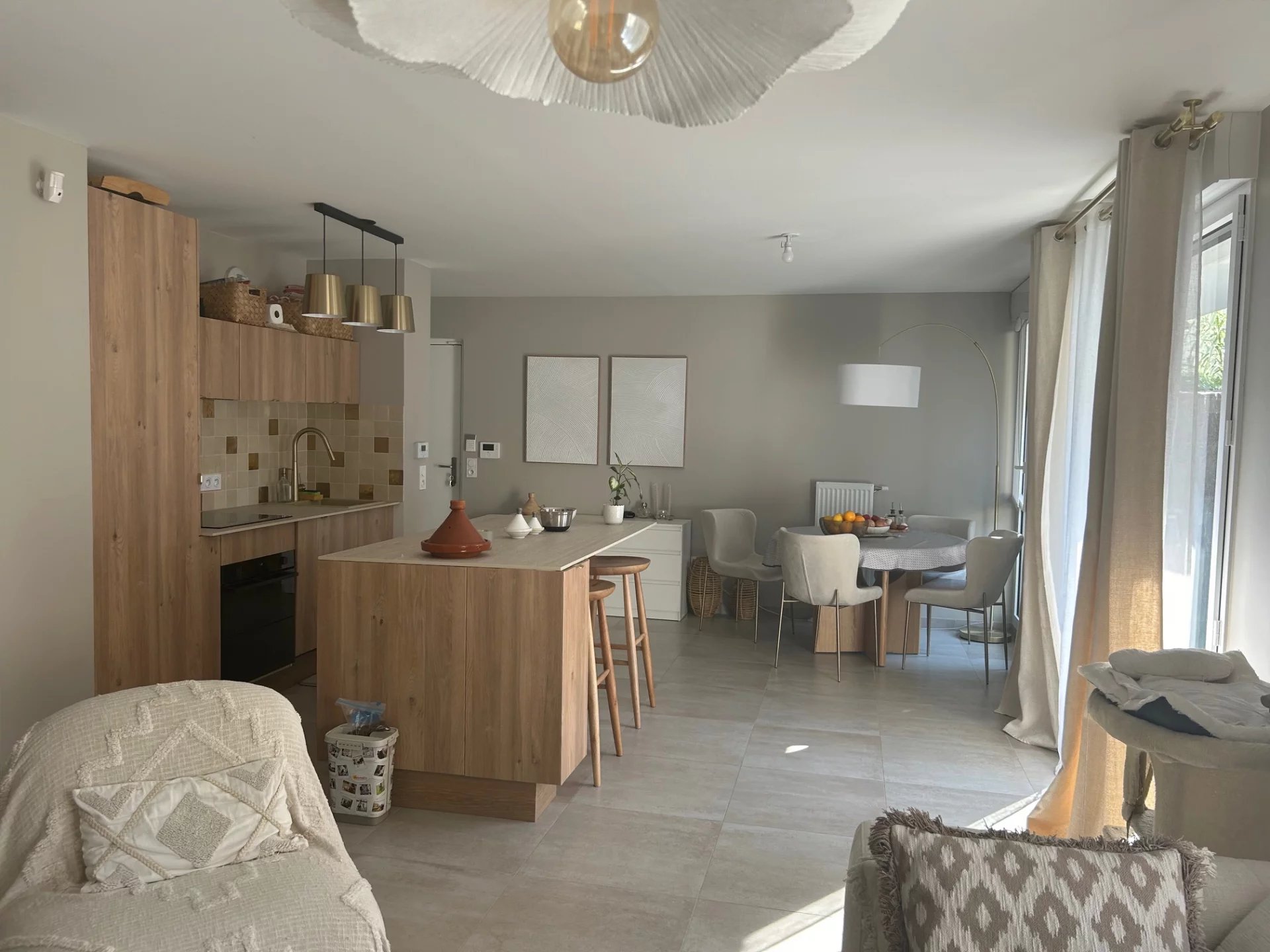 EXCLUSIVITE CENTRAL-PARK, venez découvrir ce charmant 2 pièces de 56,75 m² vendu loué soit 1215 euros dont 185 euros de charges, très cosi en rez de jardin ( 75m²) dans une petite copropriété contemporaine récente de 2022 comprenant une entrée avec placard, un séjour avec sa cuisine US aménagée et équipée en exposition ouest et son jardin, une sdb, un wc séparé, une chambre avec placard vue jardin et un emplacement de parking. l'appartement se situe au calme dans un secteur pavillonnaire.