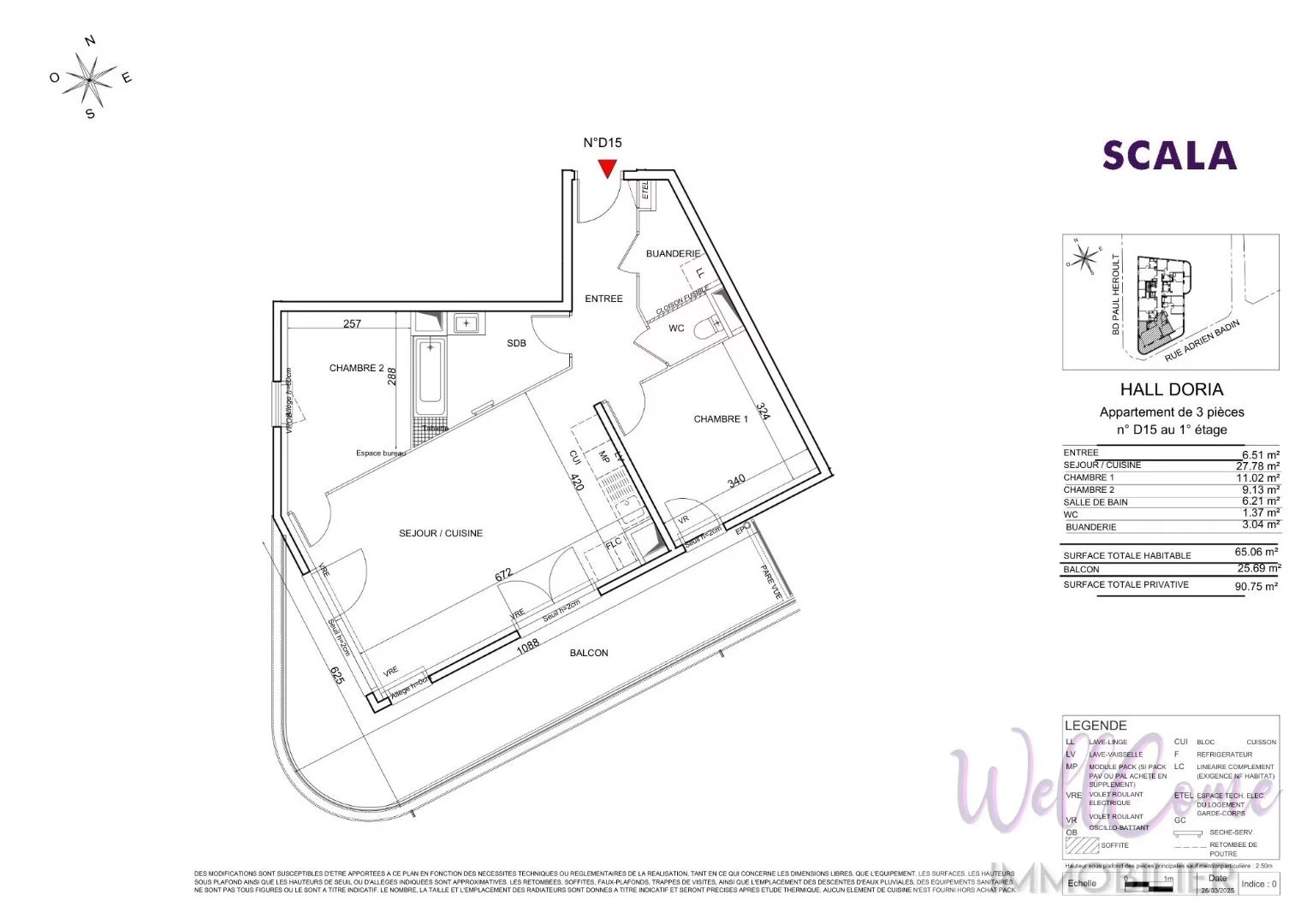 261 000 €[OFFRE EN COURS : Frais de notaire RÉDUITS + Livraison T2 2028 Actable dès maintenant !] À Cognin, à seulement 7 minutes du centre-ville de Chambéry, dans un secteur résidentiel recherché offrant de belles vues sur les reliefs montagneux et à proximité immédiate des commodités découvrez ce bel appartement neuf 3 pièces de 65,06 m², situé au 1er étage de la nouvelle résidence « SCALA », dont la livraison est prévue au 3ème trimestre 2027 (actable dès maintenant). La résidence à larchitecture élégante se compose de 5 bâtiments de 6 niveaux maximum, parfaitement intégrés dans un environnement verdoyant avec cur dîlot paysager et vues dégagées sur les montagnes. Composition de lappartement T3 : Entrée : 6,51 m² Séjour / Cuisine : 27,78 m² Chambre 1 : 11,02 m² Chambre 2 : 11,02 m² Salle de bain : 6,21 m² WC : 1,37 m² Surface habitable totale : 65,06 m² Lappartement bénéficie dun balcon de 25,69 m², idéale pour profiter dun espace extérieur privatif. Annexes & équipements : D'une box electrique en sous-sol incluse, Local vélos à disposition,Résidence sécurisée Appartement idéal pour un premier achat, un pied-à-terre ou un investissement locatif dans une ville dynamique aux portes des Alpes. Contactez-nous dès maintenant pour plus dinformations et réserver votre appartement parmi les premiers lots disponibles ! Programme certifié NF Habitat et conforme à la RT 2012 Éligible Pinel (zone B1), PTZ, LLI, LMNP et LMP Bien soumis au statut juridique de la copropriété 140 lots (hors annexes) Aucune procédure en cours Prix TTC Honoraires à la charge du vendeur Surface CARREZ : 65.06 m²