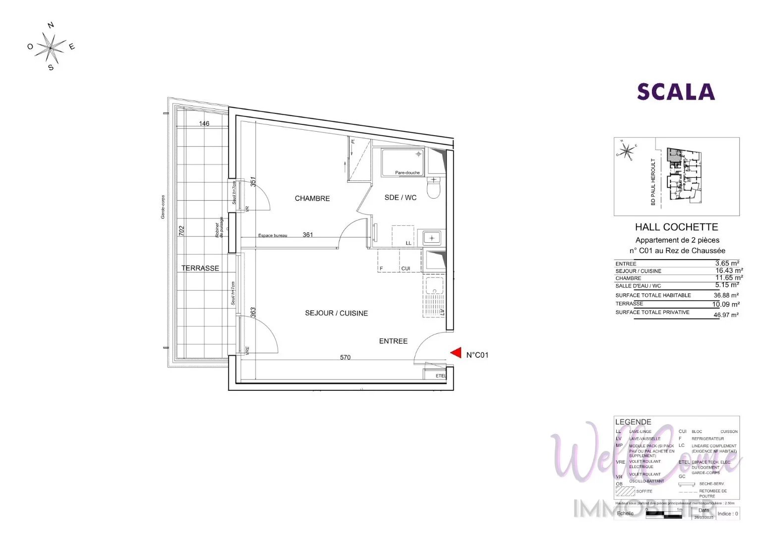 213 000 €À Cognin, aux portes de Chambéry, à seulement 7 minutes du centre-ville, découvrez la nouvelle résidence « SCALA », idéalement située dans un secteur résidentiel recherché, à proximité immédiate des commodités (commerces, écoles, transports) et offrant de belles vues dégagées sur les reliefs montagneux. Profitez dune offre en cours avec frais de notaire réduits, pour une livraison prévue au 2ème trimestre 2028, actable dès maintenant. Cette résidence à larchitecture élégante se compose de 5 bâtiments de 6 étages maximum, parfaitement intégrés dans un environnement verdoyant avec cur dîlot paysager, offrant un cadre de vie agréable entre nature et ville. Nous vous proposons ici un appartement 2 pièces de 36,88 m², situé au RDC, conçu pour offrir confort, fonctionnalité et luminosité naturelle. Il se compose de : Une entrée (3,65 m²) Un séjour avec cuisine (16,43 m²) Une chambre (11,65 m²) Une salle deau avec WC (5,15 m²) Balcon (10,09m²) Vendu avec une place de stationnement privative en sous-sol, lappartement bénéficie également dun accès à un local à vélos au sein dune résidence sécurisée. Idéal pour habiter, réaliser un premier achat, disposer dun pied-à-terre ou investir dans une ville dynamique aux portes des Alpes. Contactez-nous dès maintenant pour en savoir plus et réserver votre futur appartement parmi les premiers lots disponibles ! Programme certifié NF Habitat et conforme à la RT 2012. Éligible aux dispositifs Pinel (zone B1), PTZ, LLI, LMNP et LMP. Bien soumis au statut de la copropriété 140 lots (hors annexes). Aucune procédure en cours. Prix TTC Honoraires à la charge du vendeur. Surface CARREZ : 36.88 m²