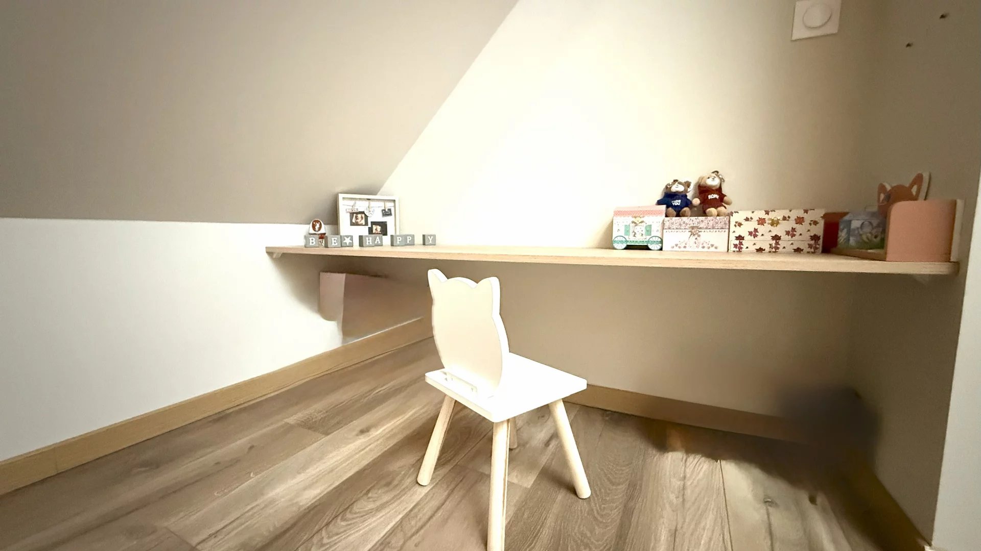 À l’étage, trois chambres avec placards intégrés, une salle de bain et un second WC offrent un espace nuit confortable et familial.