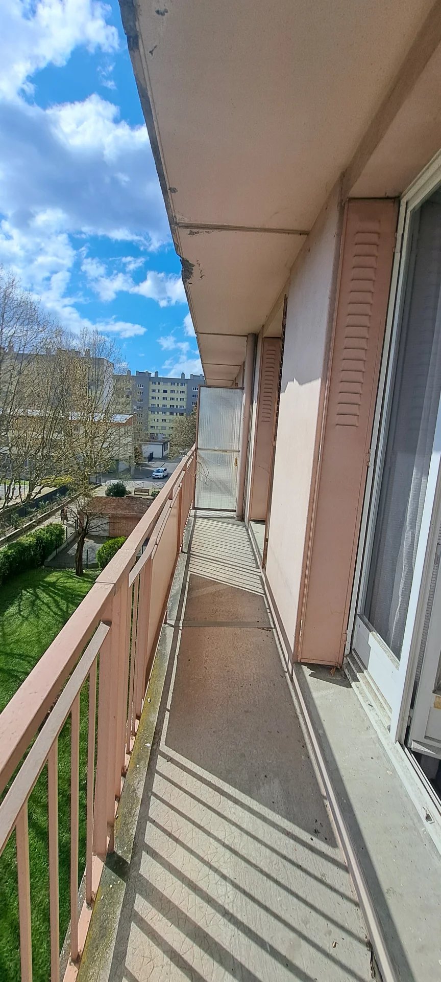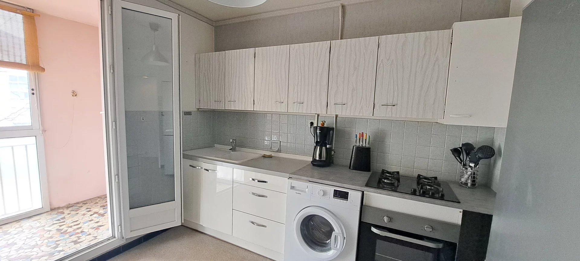 L'appartement est composé d'une cuisine équipée avec loggia, un salon avec balcon filant, un grand placard de rangement, 3 chambres dont une avec accès au balcon, une salle de bain et un wc séparé.