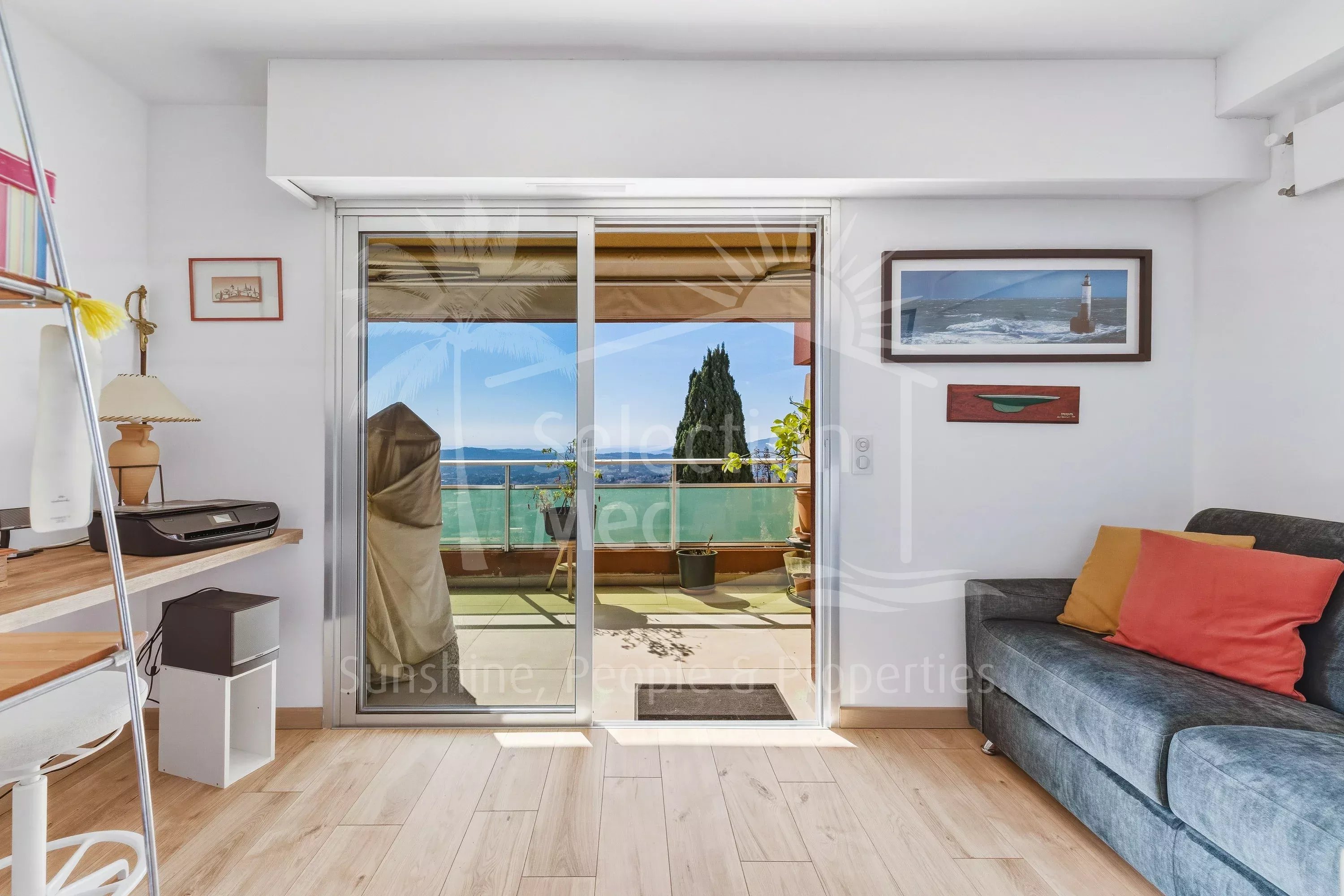 Situé au dernier étage avec ascenseur, sur un palier privatif, il comprend un magnifique séjour traversant de presque 60 m2 avec cuisine américaine entièrement équipée. Le salon ouvre sur une profonde terrasse plein sud de 30 m2 d'où vous profiterez d'une vue panoramique jusqu'à la mer.