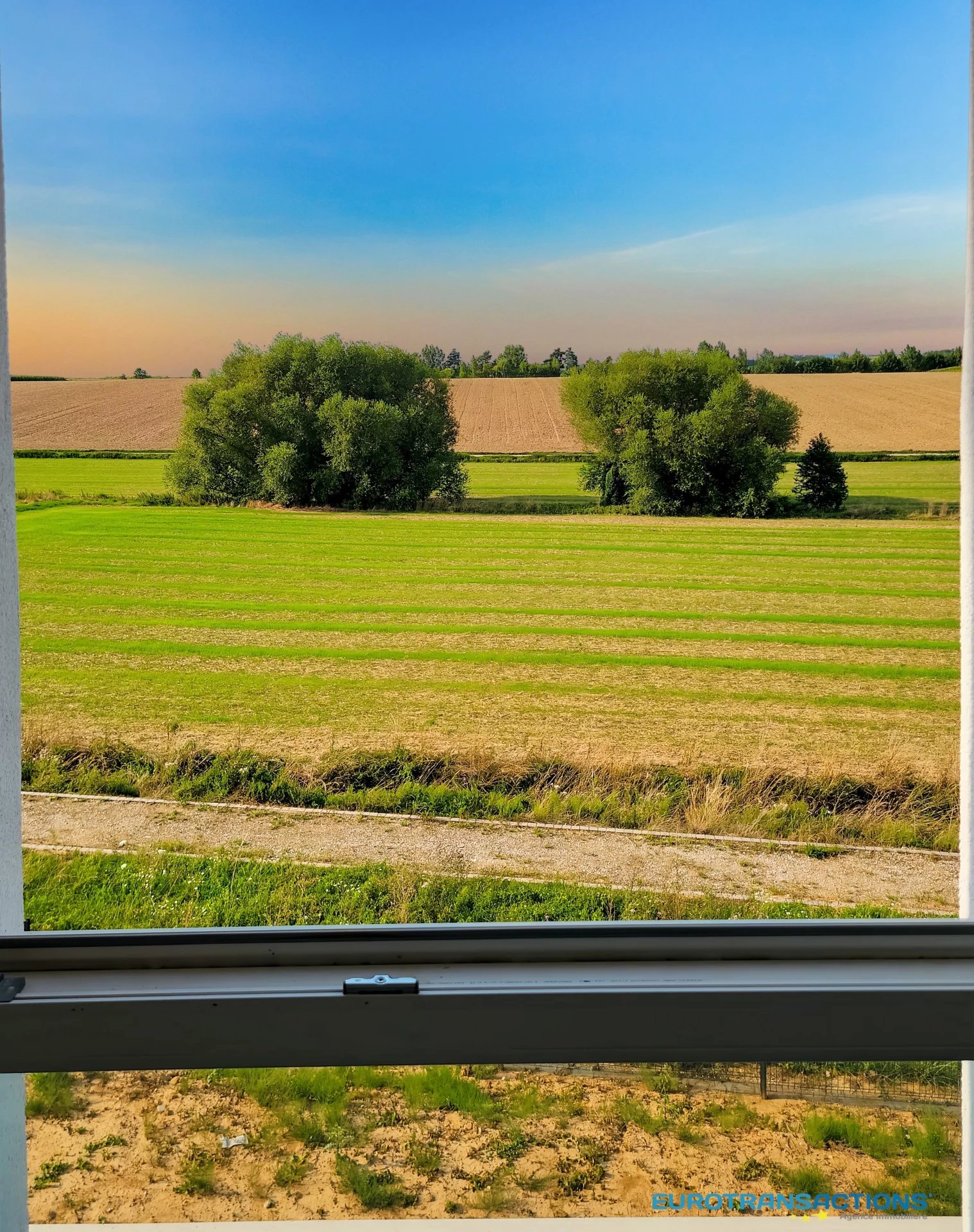 En lisière de champs, au calme, découvrez ce bel appartement, jamais occupé, libre de suite, au 1er étage d’une petite copropriété de 2 logements seulement.