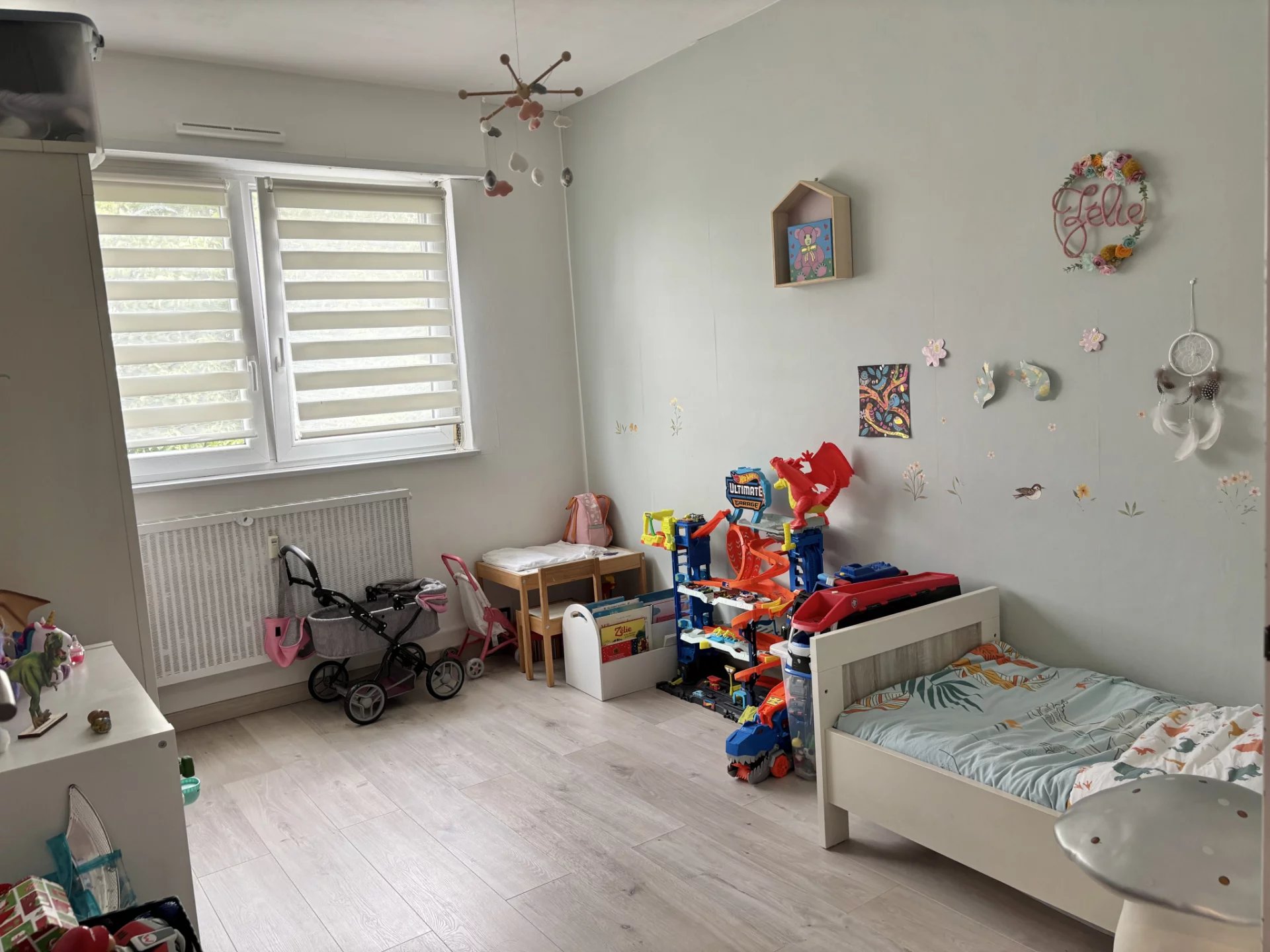 Il comprend un hall d'entrée avec de nombreux placards intégrés, un grand salon séjour de 29m2 avec accès au balcon exposé Ouest et doté d'un store, une cuisine équipée avec une loggia pouvant servir de buanderie ou d'espace de stockage, une salle de douche, un WC séparé, deux chambres enfant, une chambre parentale, un débarras.