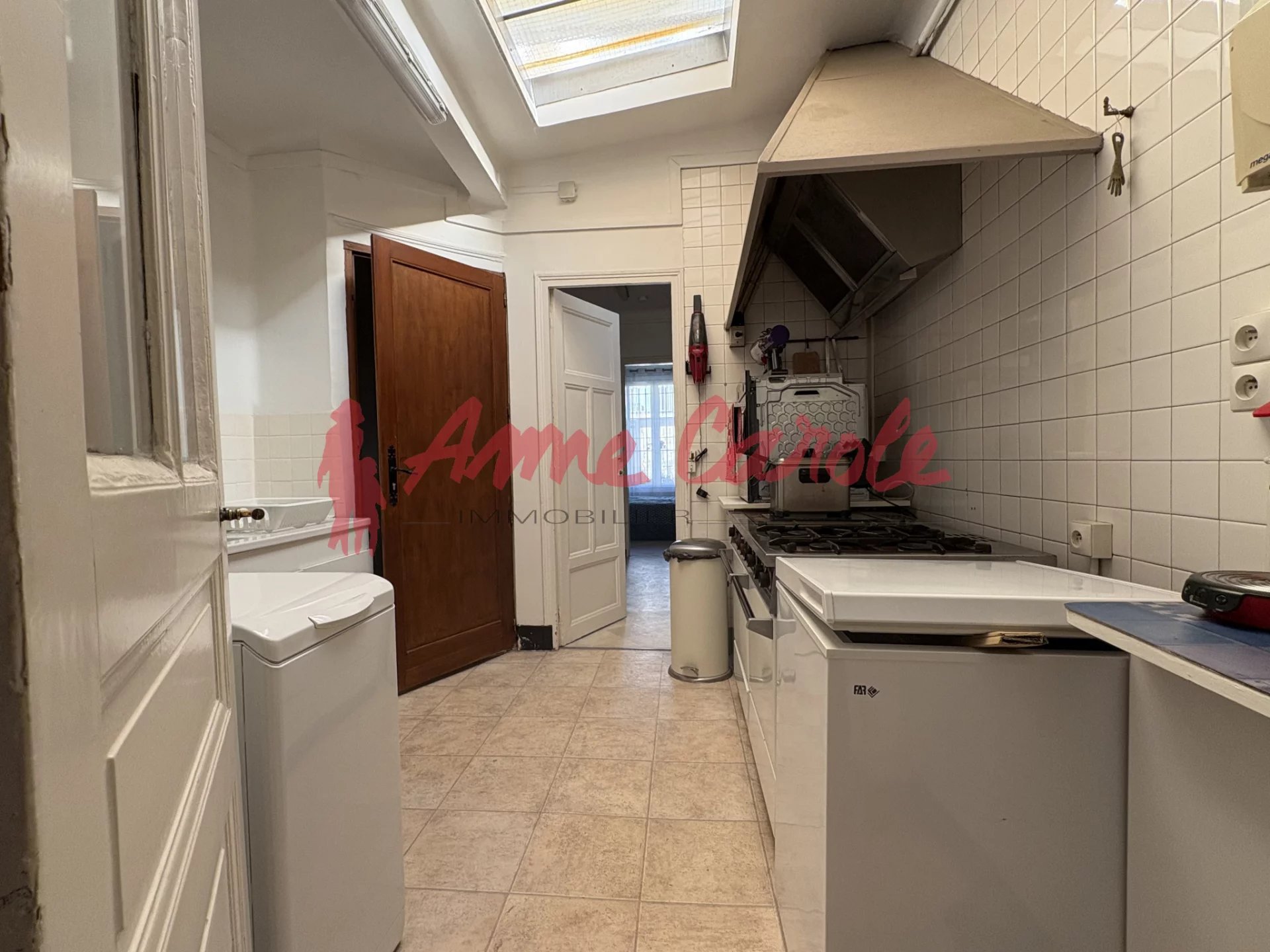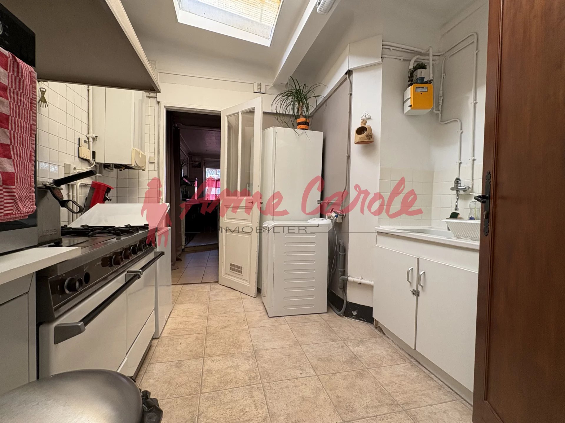 Actuellement aménagé en appartement, il offre un grand espace de vie de 52 m2, cuisine, une chambre, un bureau, salle d'eau avec WC + grande cave avec accès direct de l'appartement.