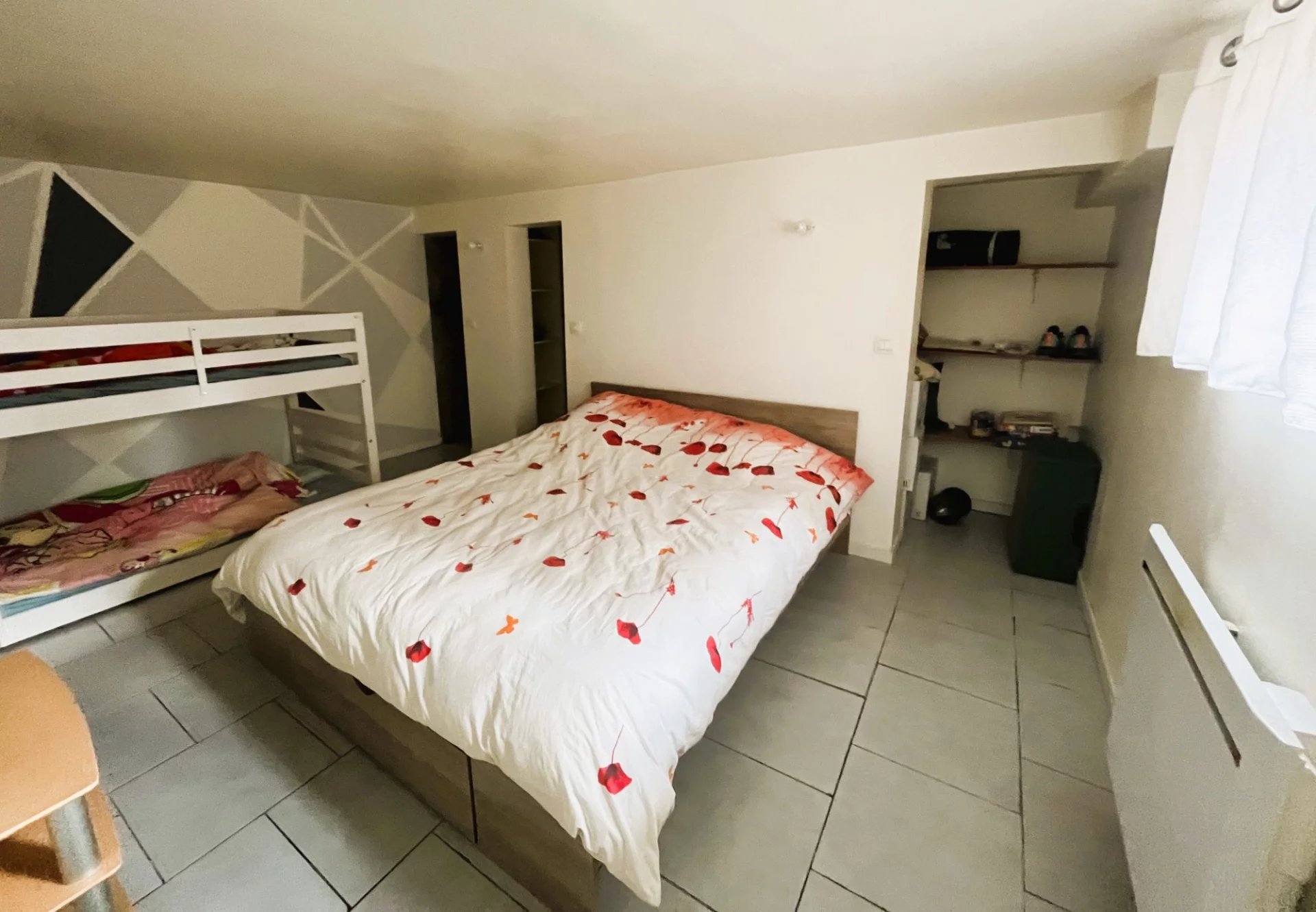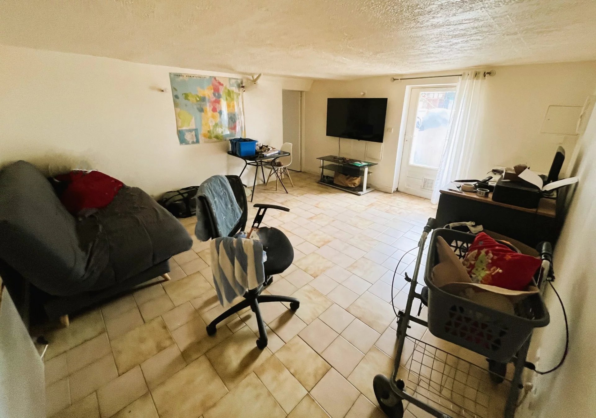 Au niveau entre-sol : un séjour et une chambre avec placard.