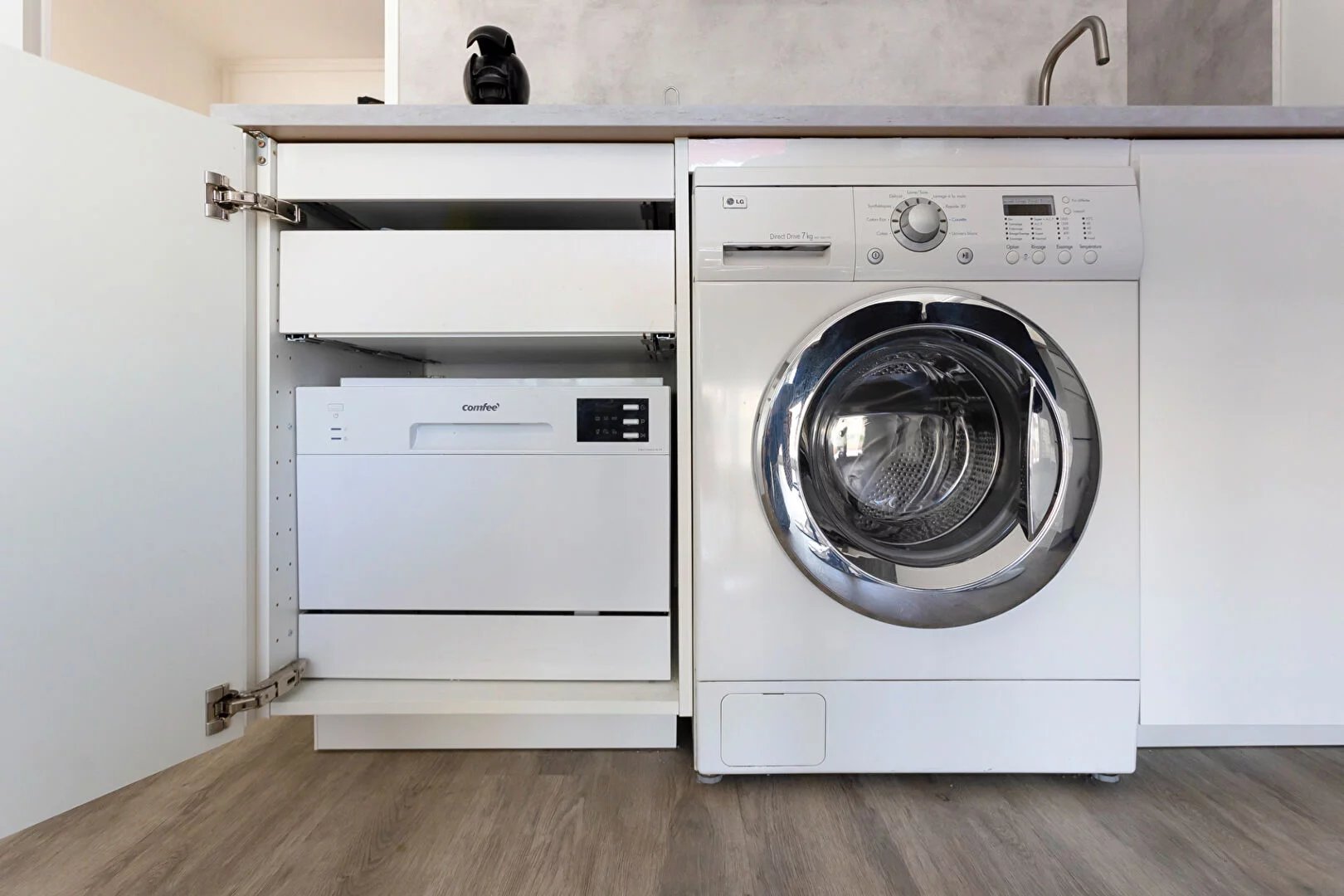 Il se compose d'une pièce de vie lumineuse avec cuisine ouverte équipée (réfrigérateur, congélateur, micro-ondes, lave-vaisselle, plaques de cuisson), d'un canapé-lit 160 cm (modèle Rapido), d'un grand placard, de nombreux rangements, d'une cabine avec deux lits superposés permettant 4 couchages au total, d'une salle d'eau avec grande douche 120x90 et de toilettes séparées.