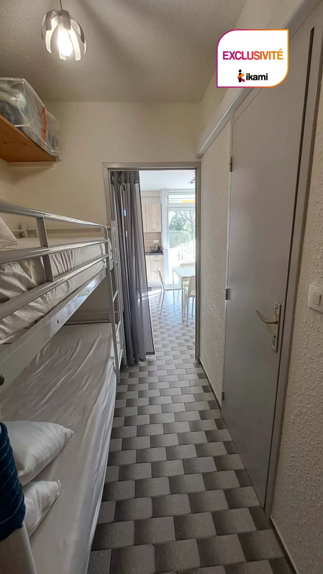 Au sein d'une résidence fermée et sécurisée, ce T1 se compose d'une pièce de vie lumineuse avec cuisine équipée et lit escamotable, d'un espace cabine avec lits jumeaux, idéal pour optimiser le couchage, ainsi que d'une salle d'eau et d'un WC séparé.