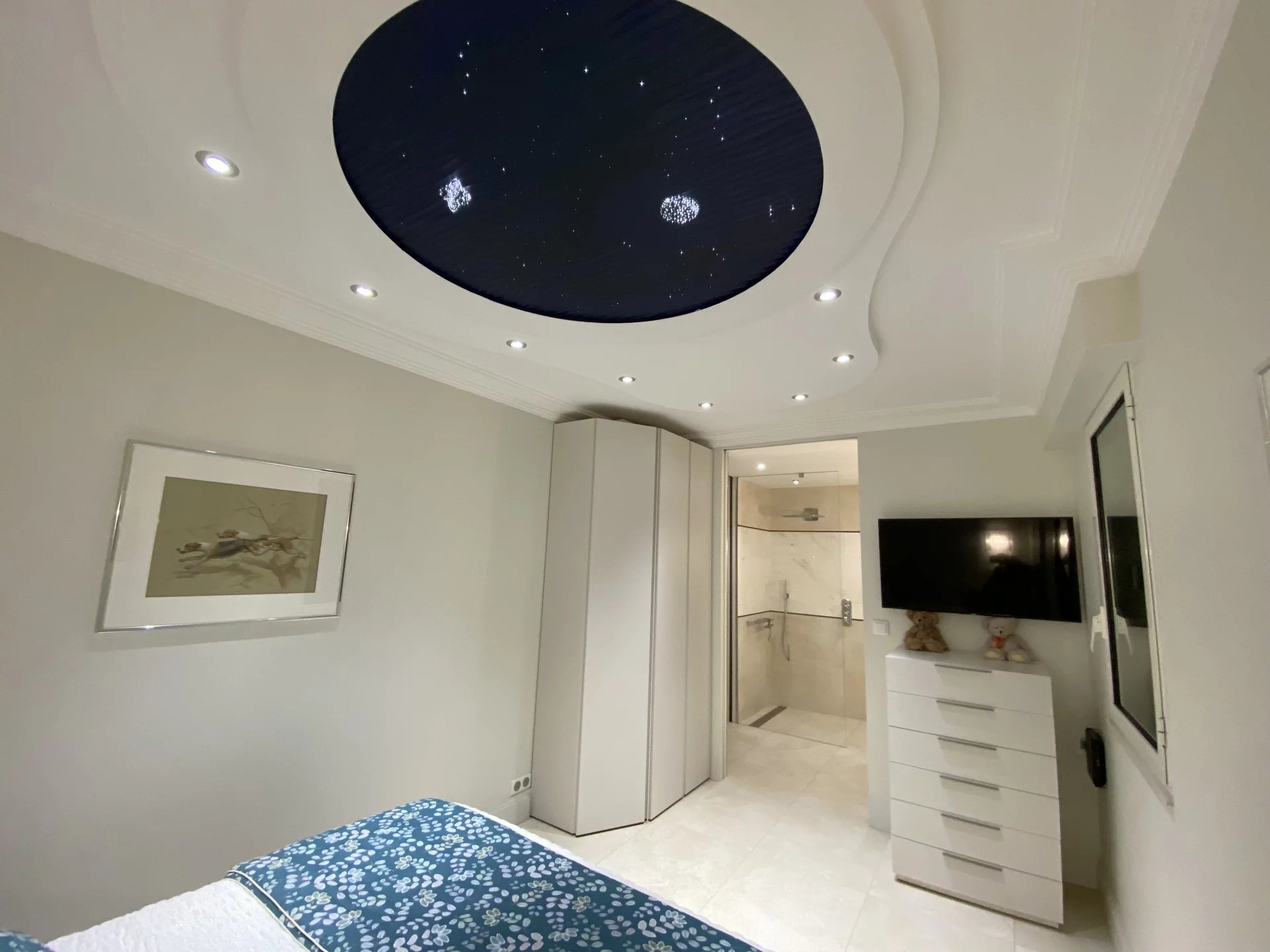 L’espace de vie, pensé dans les moindres détails, s’ouvre sur une cuisine luxueuse et intègre des aménagements sur mesure. La master room, véritable cocon face à l’océan, dispose de son propre dressing et d’une salle de bain privative. Une suite d’ami tout aussi raffinée vient parfaire l’ensemble avec son ciel étoilé !