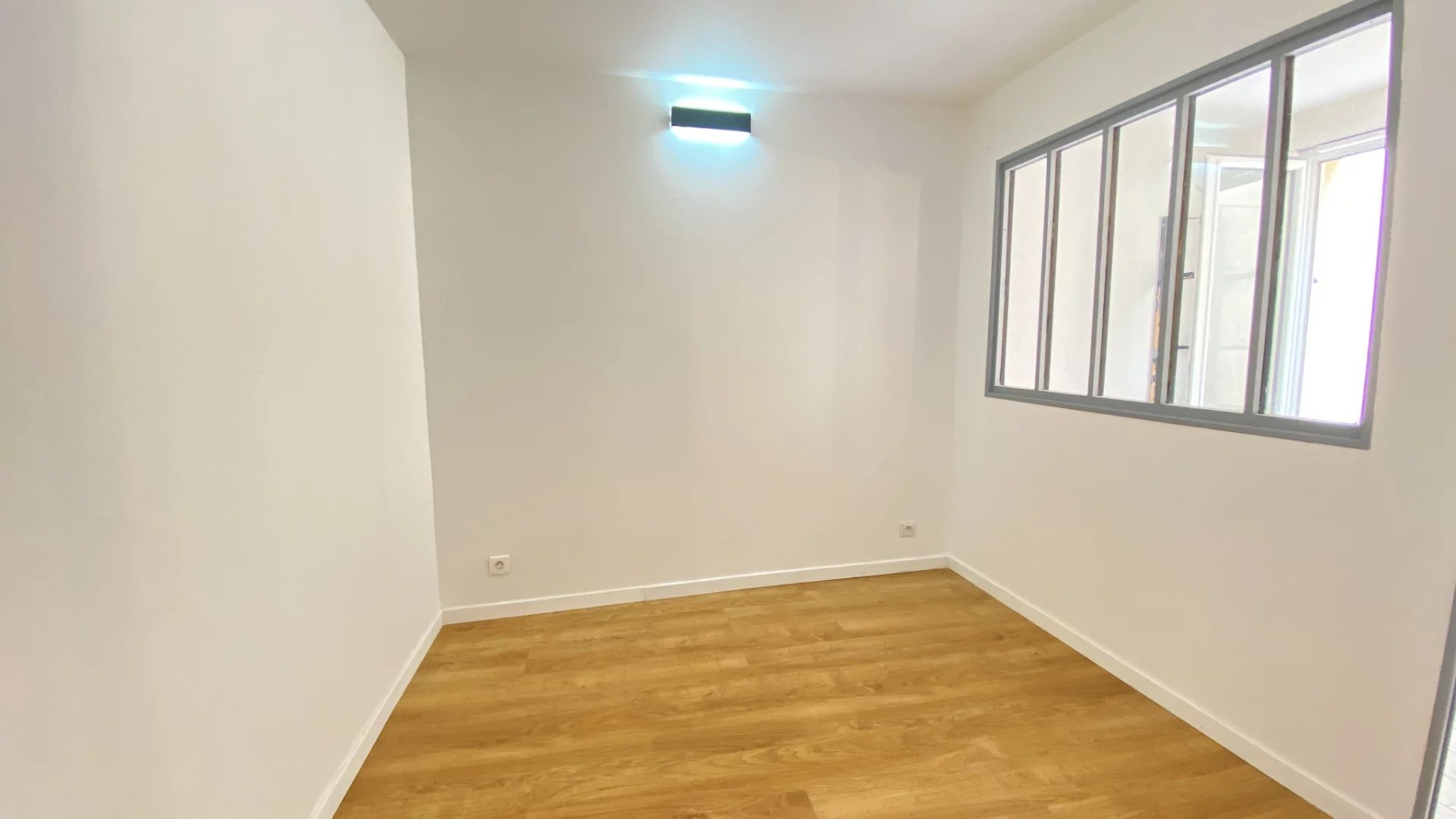 L'entrée sur la pièce de vie de 24m2 permet de bénéficier d'un espace de rangements, d'une belle cuisine ouverte, récente et très fonctionnelle, et d'une partie séjour prolongée par une courette privative. Ce patio couvert par un toit transparent et ouvrable est un vértiable atout utilisable en toute saison et ramenant la lumière dans l'espace nuit composé d'une chambre et sa salle d'eau attenante.
