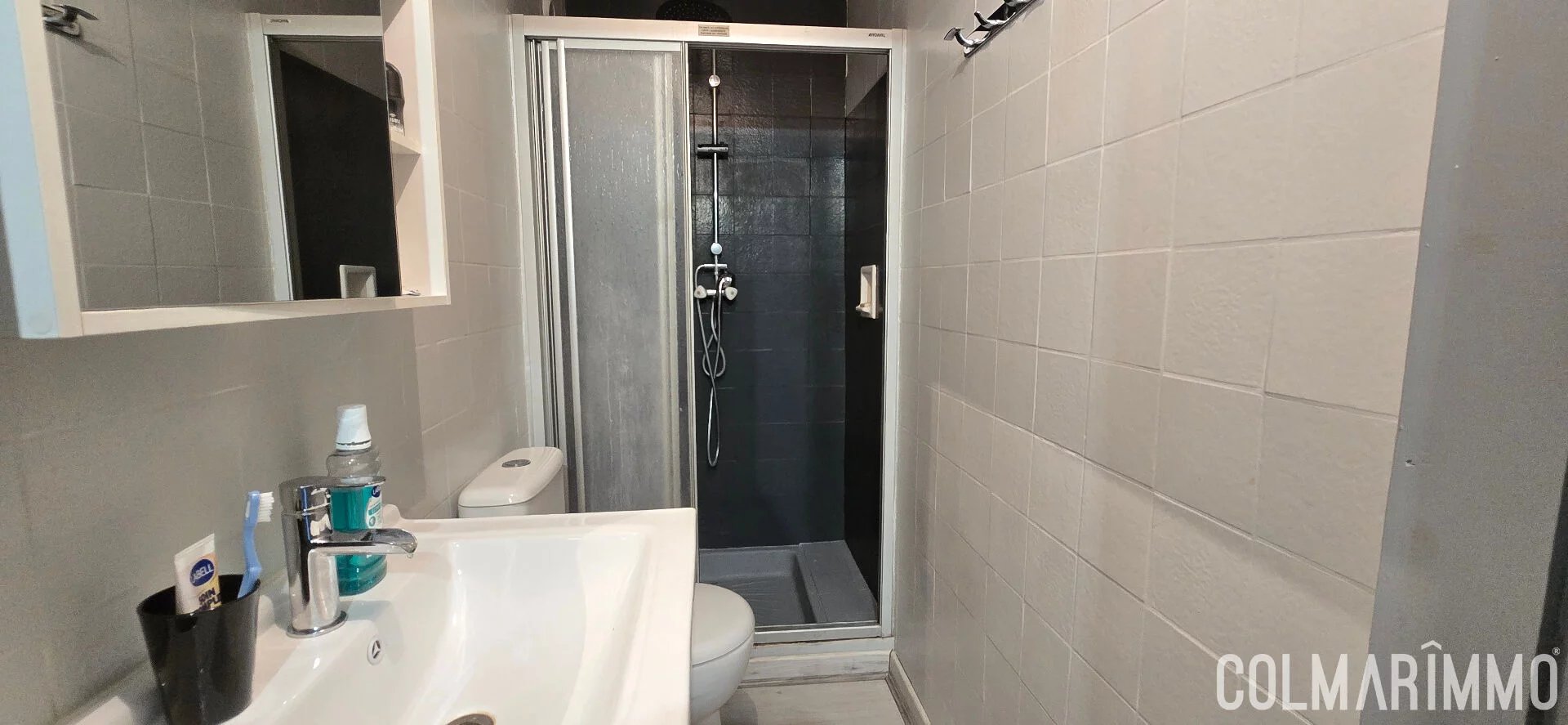 Un dégagement dessert une salle d'eau avec WC ainsi qu'une chambre .