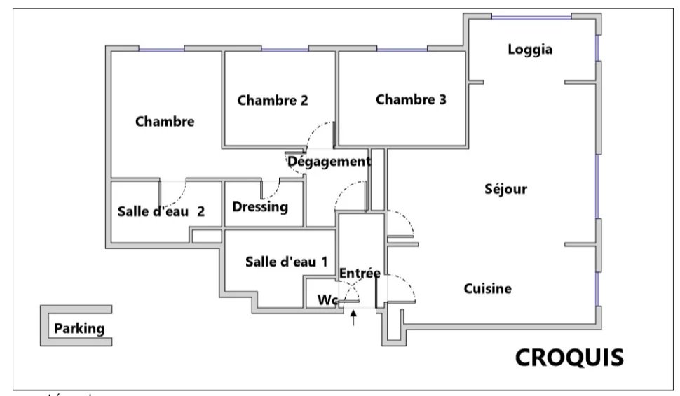 Appartement 100 m² 5 pièces / 3 chambres